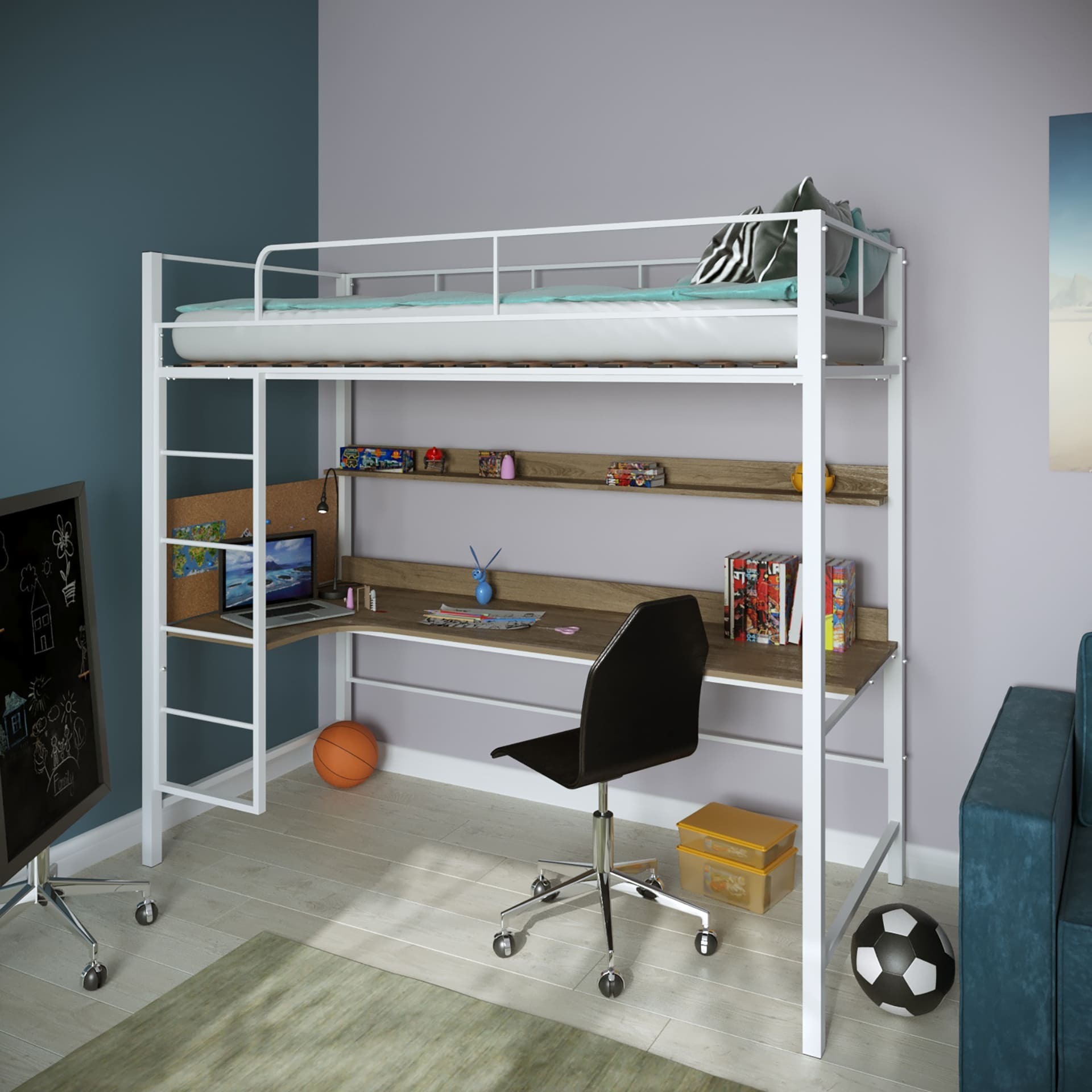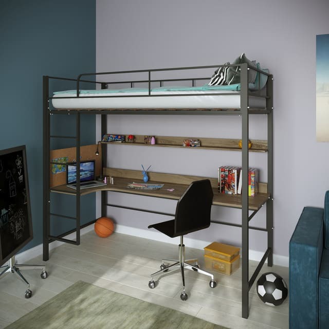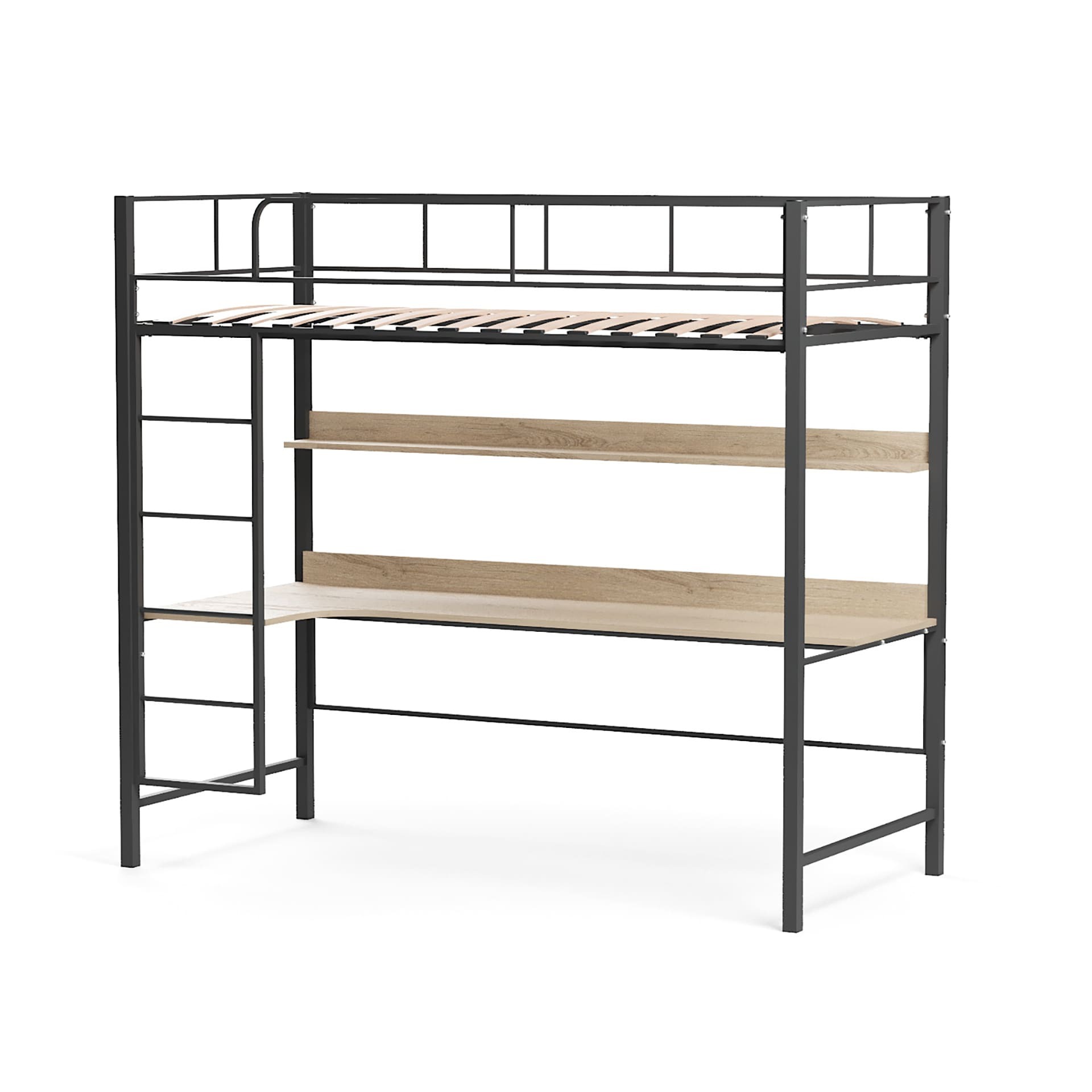 Кровать-чердак позволит создать уютную спальню, не перегрузив ее при этом мебелью. Преимуществом такой кровати является не только компактный размер, но и комфортное спальное место, совмещенное с рабочей зоной. Подъем на верх осуществляется по удобной лесенке, а сами кровати оснащены высокими бортиками, обеспечивающими безопасность. Добавит уюта и непринужденности интерьерам домов отдыха и хостелов. Изготавливается из металла. Кровать имеет экологически безопасное и качественное полимерное покрытие.