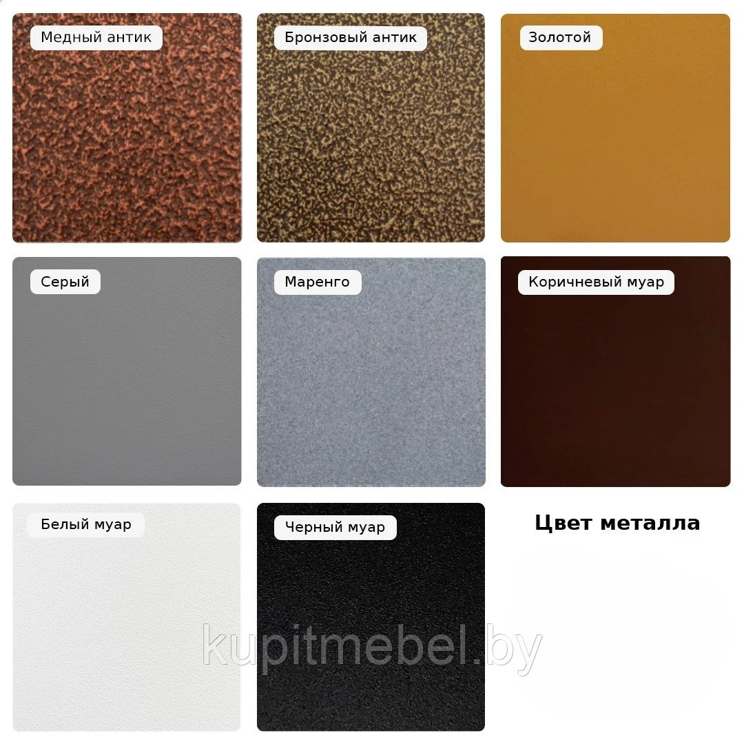 Цвет металла: Маренго, Белый муар, Бронзовый антик, Золотой, Коричневый муар, Медный антик, Серый, Черный муар.