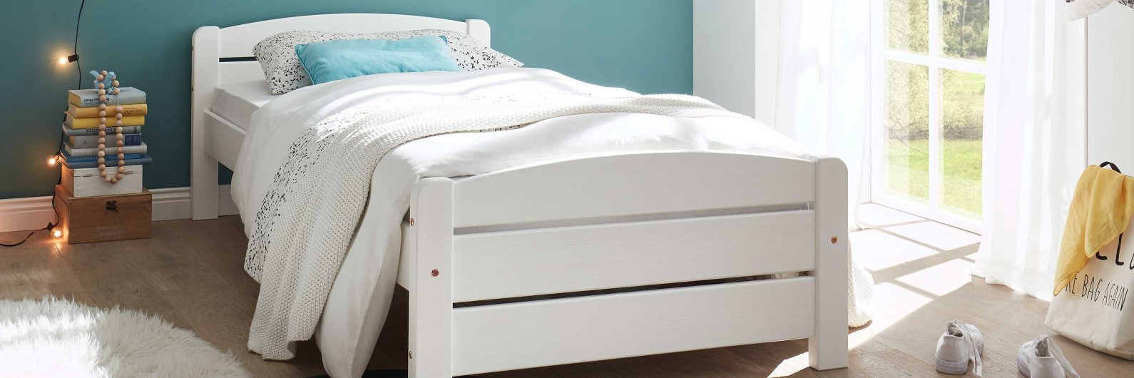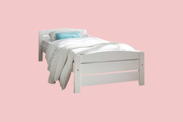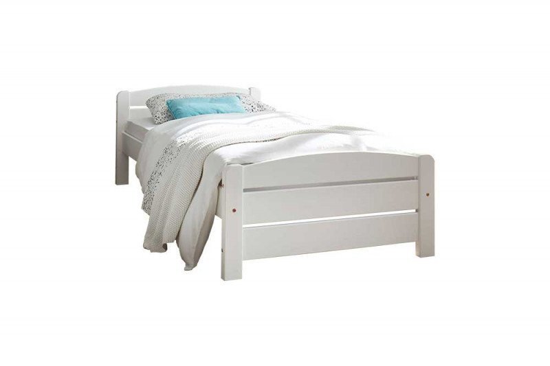 код 129626Кровать односпальная белая из массива сосны (с настилом под матрас в комплекте)
