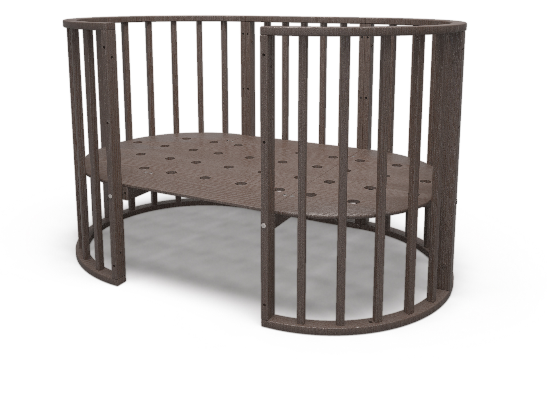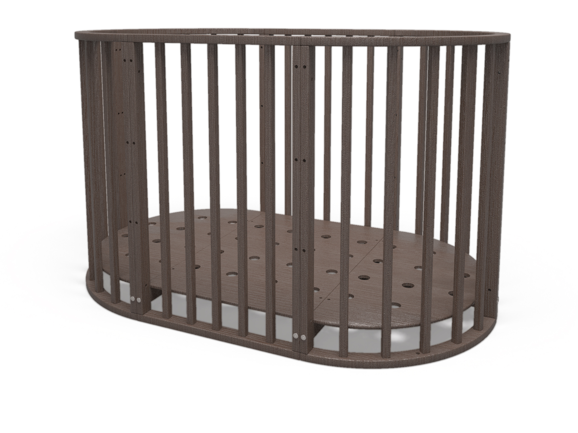 Размеры овальной кроватки ДхШхВ): 1280x760x810 мм.