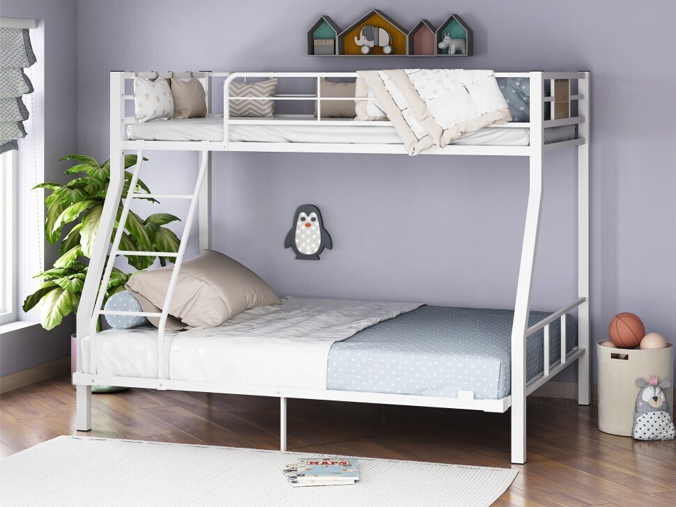 Все металлические элементы кровати покрыты износоустойчивой краской без запаха. Двухъярусную кровать можно собирать и разбирать неограниченное количество раз, и от этого она не потеряет в прочности и качестве.