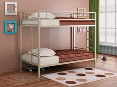 Все металлические элементы кровати покрыты износоустойчивой краской без запаха. Двухъярусную кровать можно собирать и разбирать неограниченное количество раз, и от этого она не потеряет в прочности и качестве.