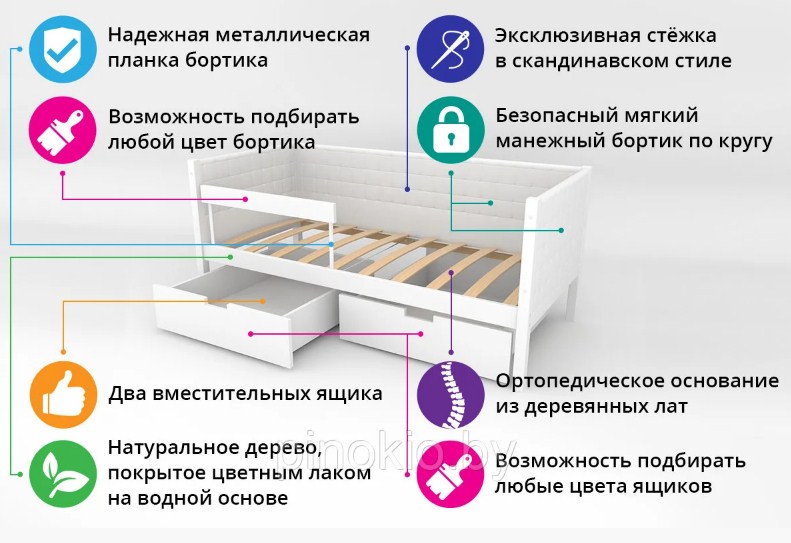 Бортик, ящик для белья, матрас - приобретатся отдельно.