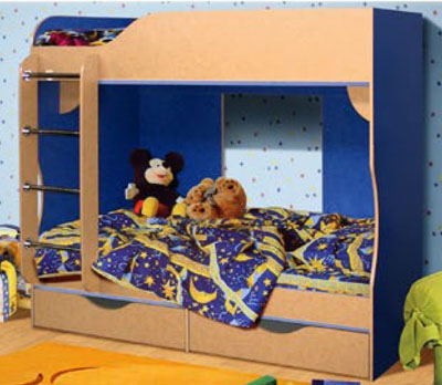 Кровать не имеет острых углов и оснащена безопасной лестницей. Для изготовления представленного образца используются качественные материалы: импортная древесностружечная плита цветовой гаммы яблоня светлая, яблоня тёмная, терра жёлтая, терра голубая. Кромка ПВХ прочно защищает от сколов и механических повреждений поверхности деталей. Угловой стол расположен на устойчивой хромированной опоре и позволяет расположить не только компьютер, но и школьные принадлежности.