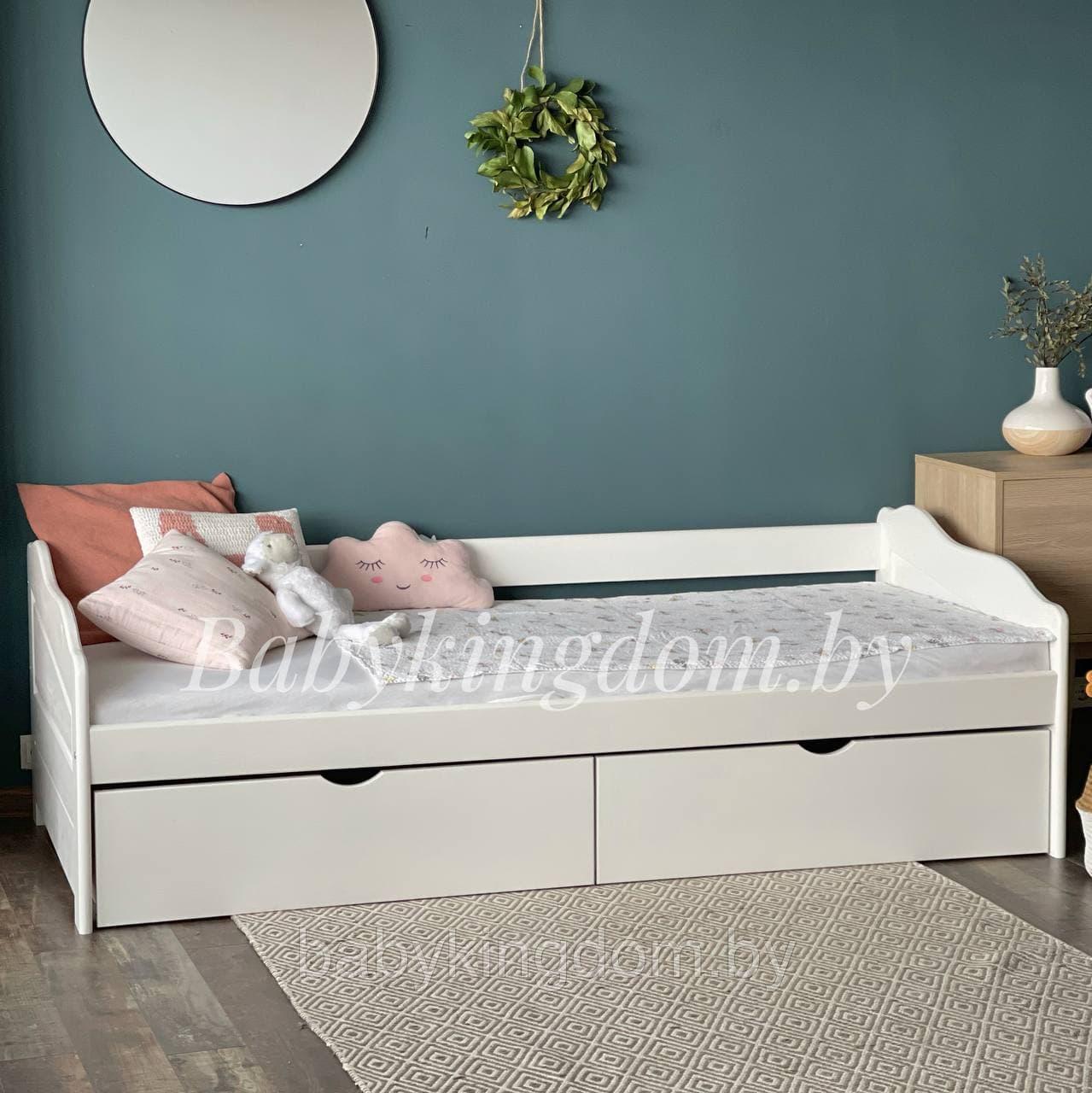 Кровать с бортиком и ящиками «Ночь» (белая)