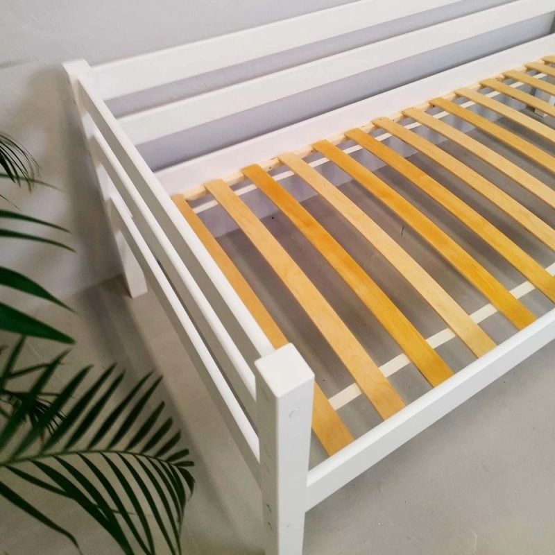 Благодаря комбинации массива и березовой фанеры кровать очень прочная и выдерживает большую нгрузку до 130 кг.