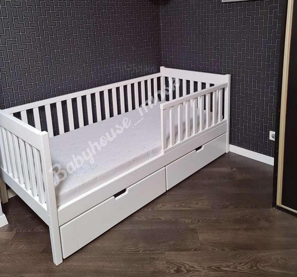 Кровать «Ecodrev» Классик со стационарный бортиком и ящиками (белая)