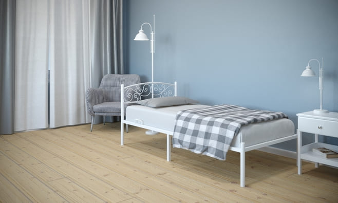 Кровать из металла Лилия – сочетание нежности и игривости. Отлично подойдёт как для взрослой спальни, так и для детской. Внесёт нотку уюта в пространство.