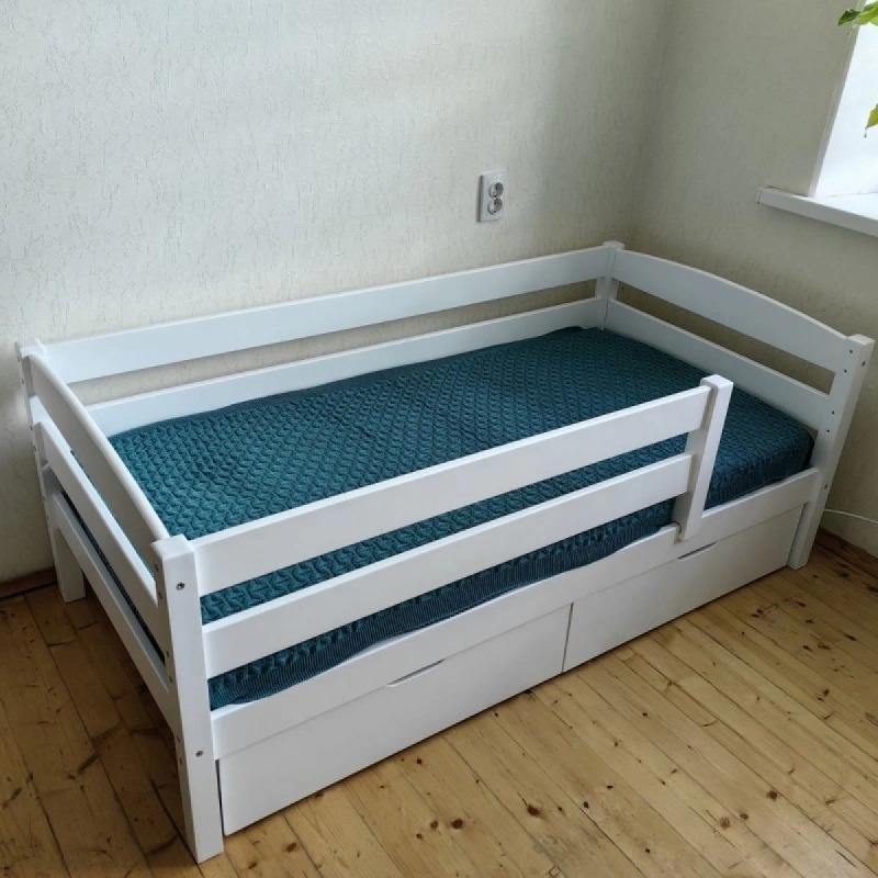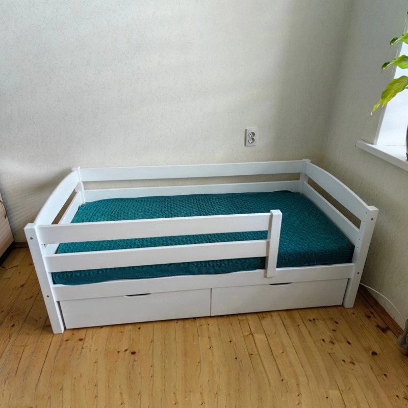 Односпальная кровать с бортиком и ящиками «Софи» (белая)