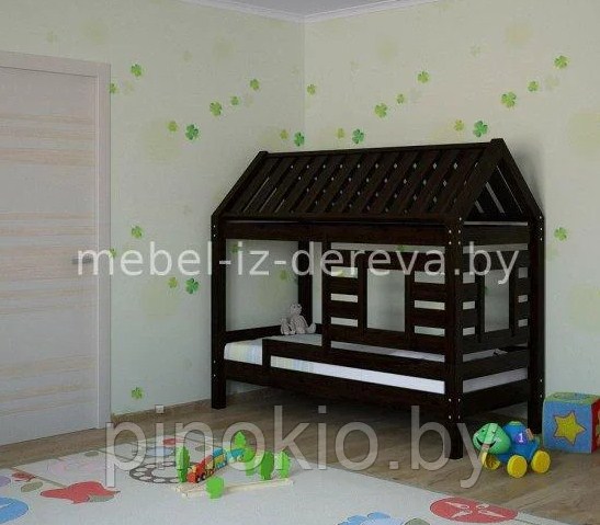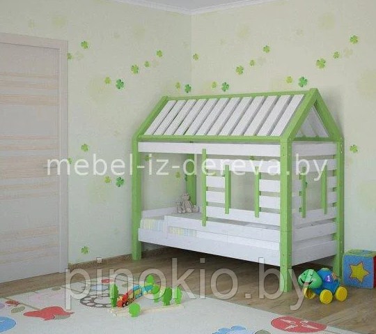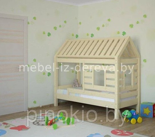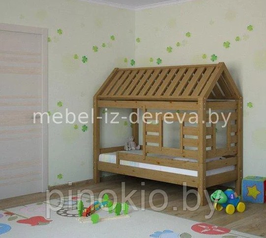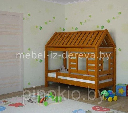 код 104173Односпальная кровать с конструкцией в виде домика. Массив сосны.
