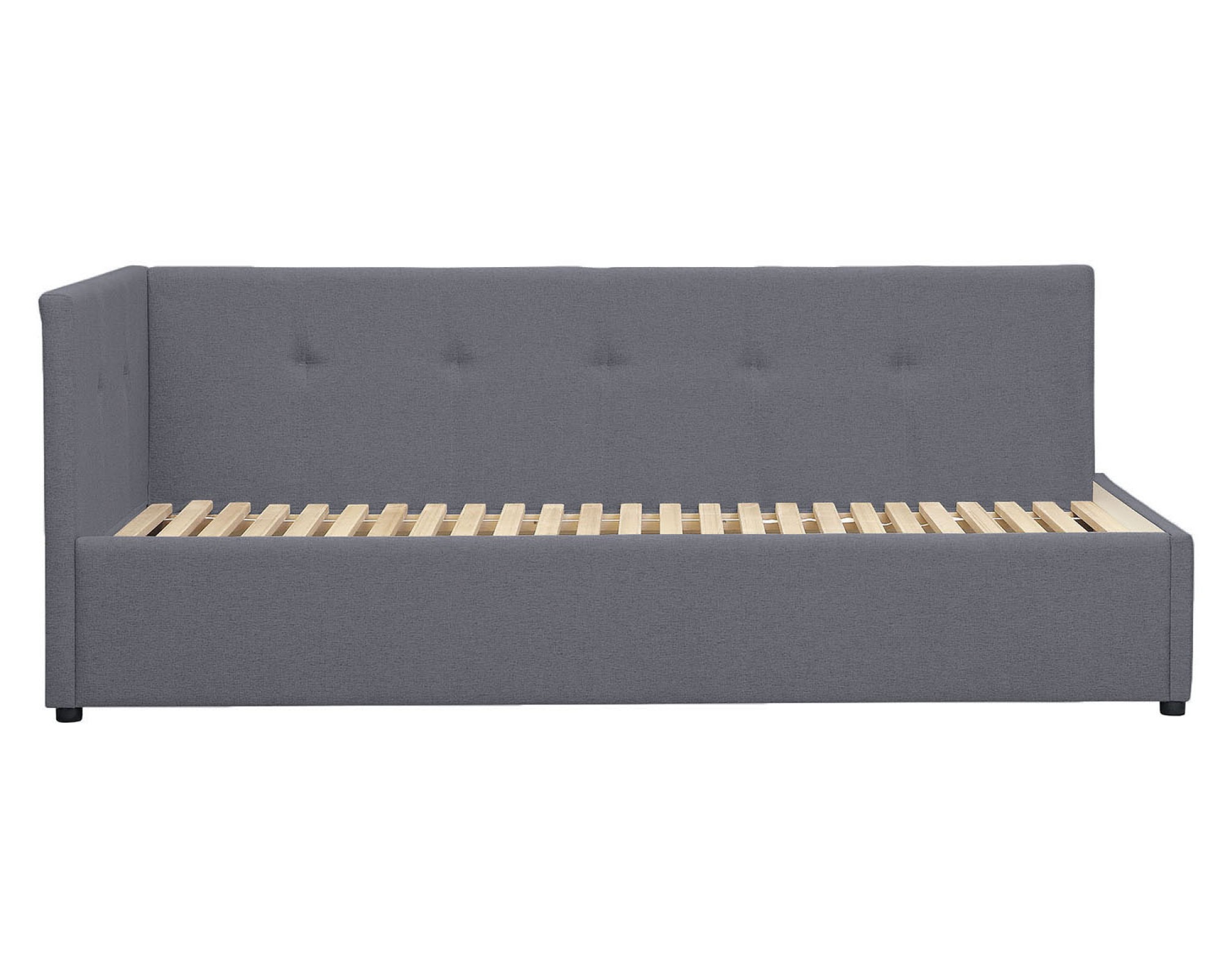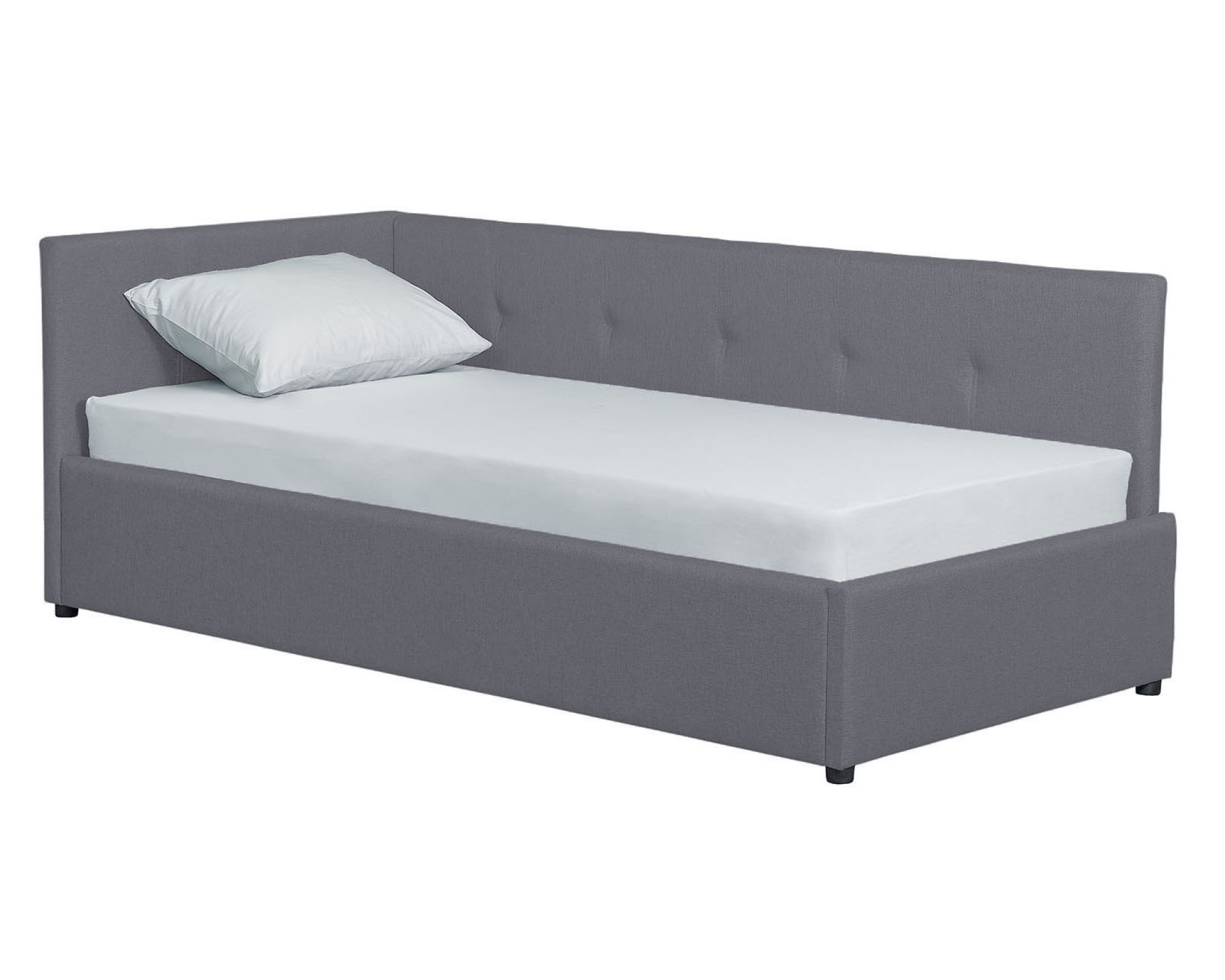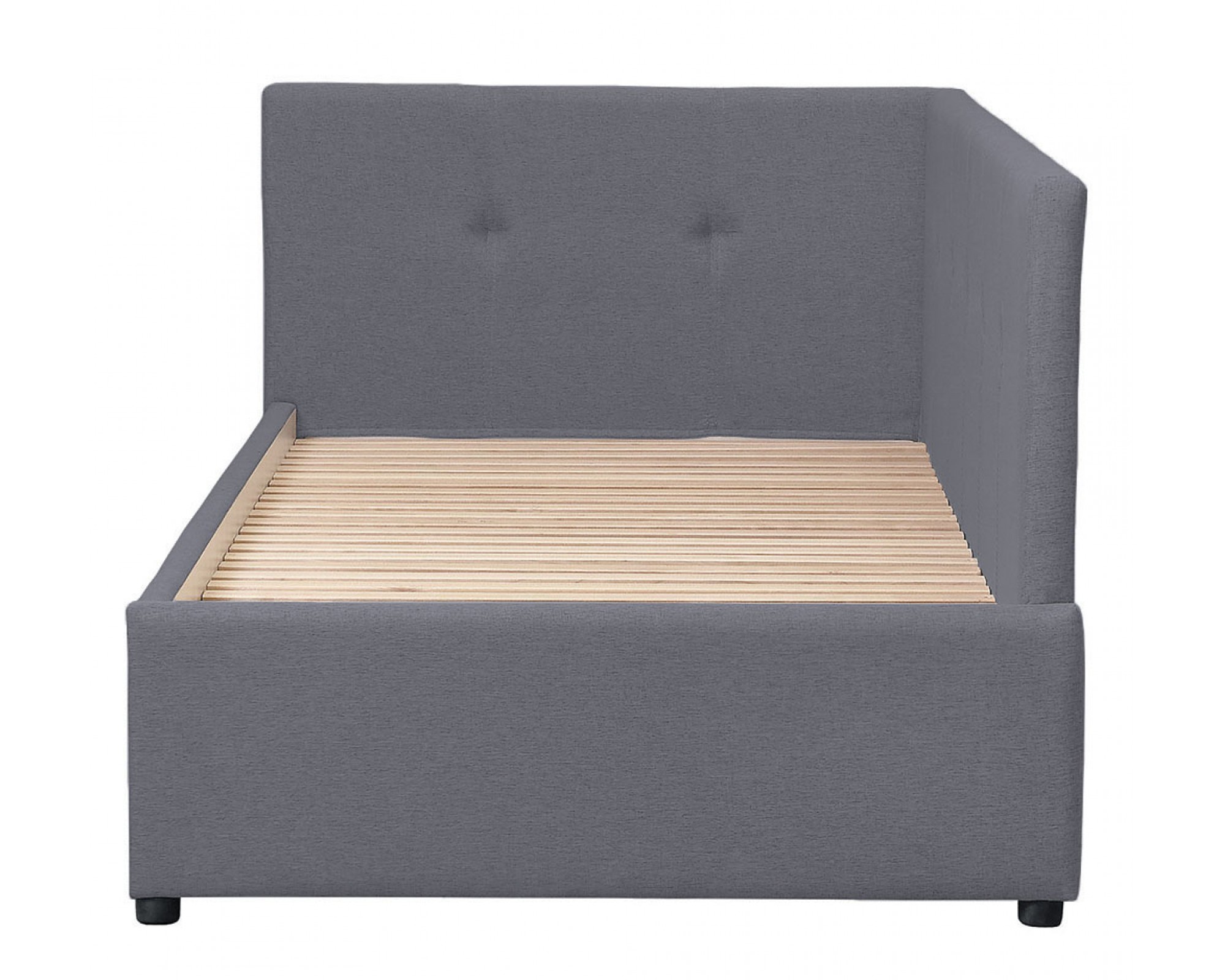 Односпальная кровать-софа КВАДРО с мягким изголовьем - новинка мебельной фабрики Элегия (РФ). Основание кровати выполнено в виде реечного настила из бруса. Такой реечный настил не только обеспечивает хорошую поддержку матраца и вентиляцию, но и является надежным основанием, способным выдержать высокую нагрузку на спальное место. Кровать-софа с отличным вариантом ортопедического основания для матраса будет функциональным решением для жилой комнаты, используемой для занятий и встреч и, одновременно, в качестве места для сна.