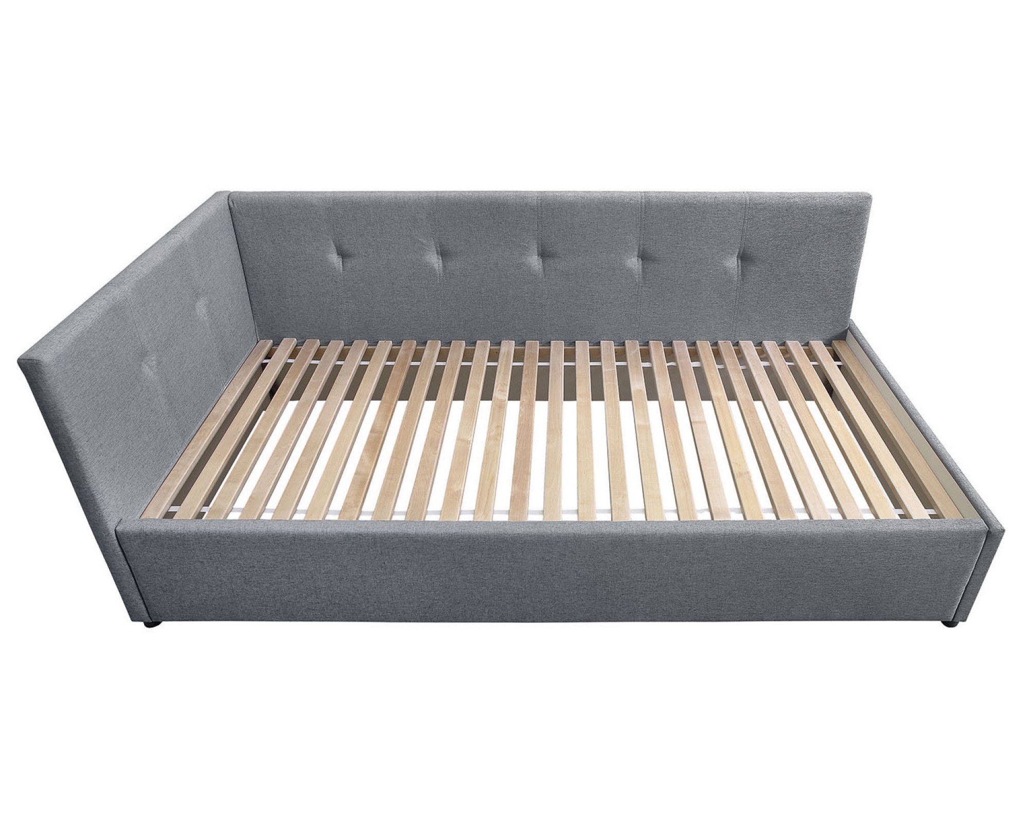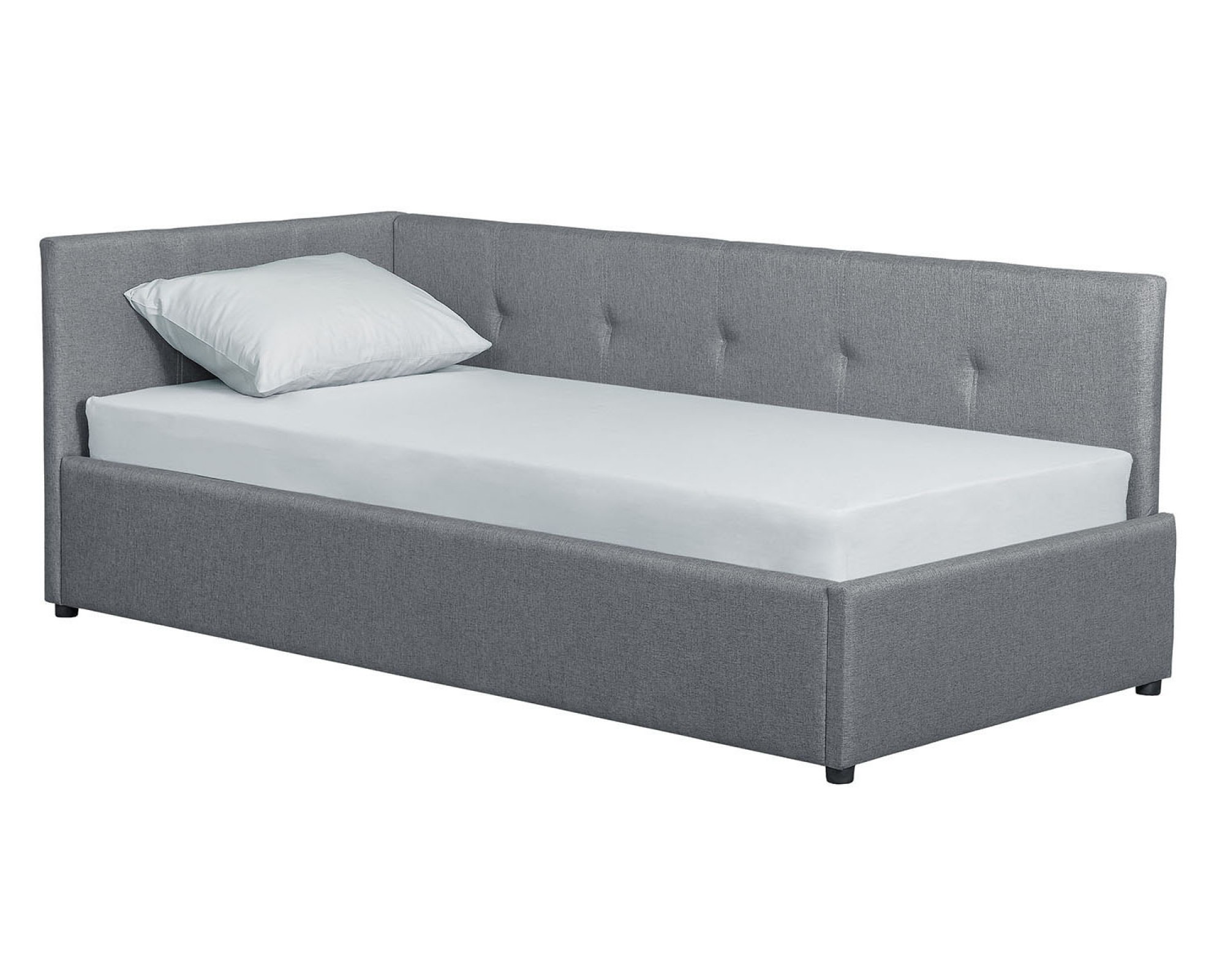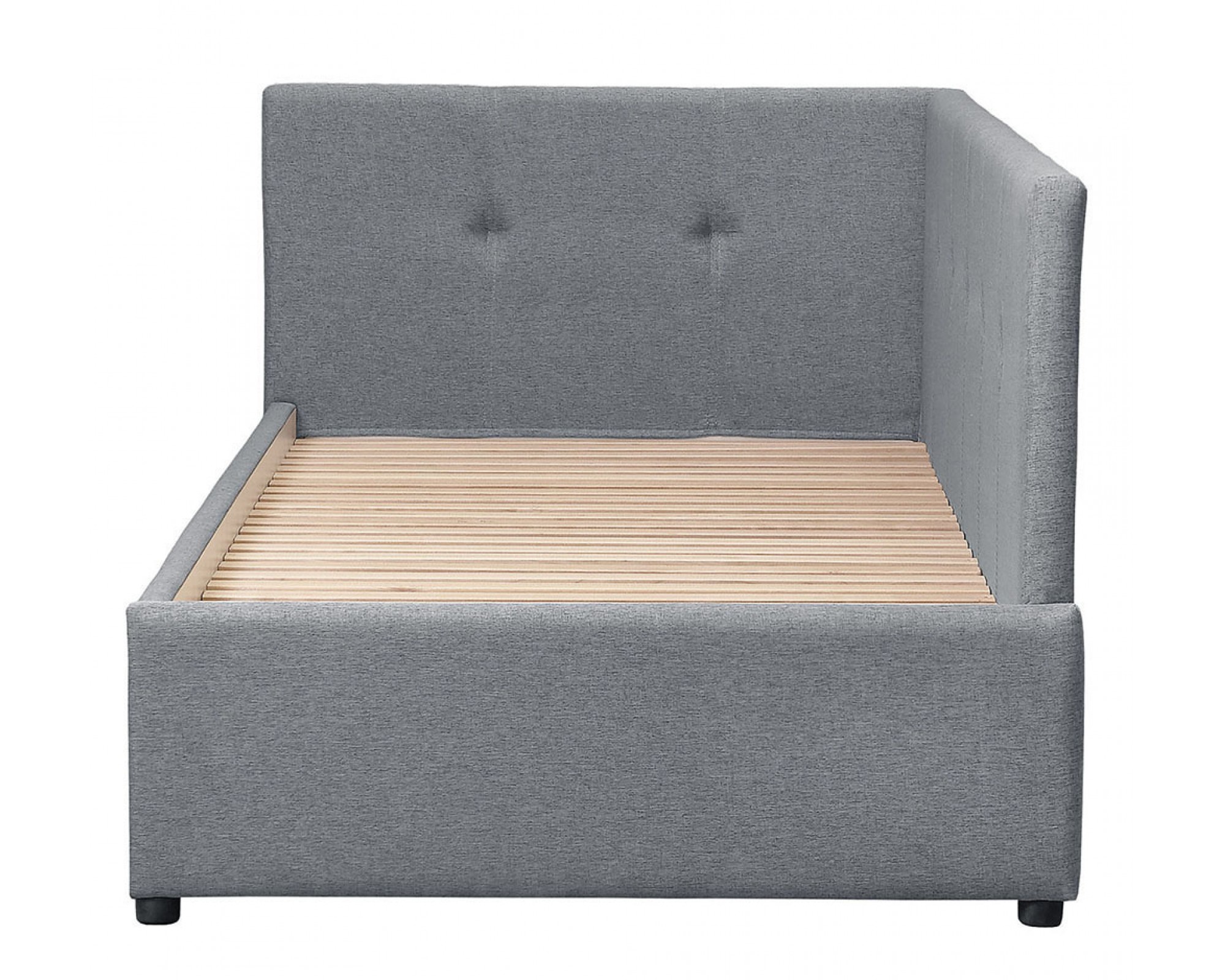 Односпальная кровать-софа КВАДРО с мягким изголовьем - новинка мебельной фабрики Элегия (РФ). Основание кровати выполнено в виде реечного настила из бруса. Такой реечный настил не только обеспечивает хорошую поддержку матраца и вентиляцию, но и является надежным основанием, способным выдержать высокую нагрузку на спальное место. Кровать-софа с отличным вариантом ортопедического основания для матраса будет функциональным решением для жилой комнаты, используемой для занятий и встреч и, одновременно, в качестве места для сна.
