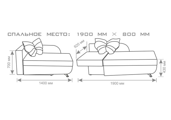 1400х700х820 мм