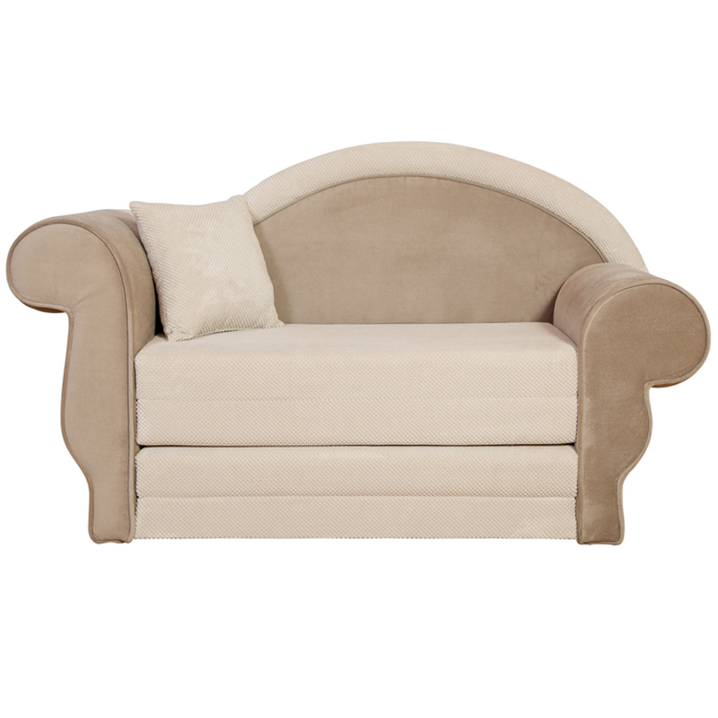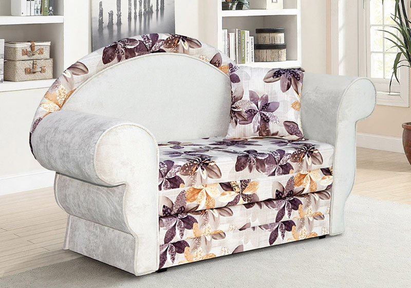 Мини-диван «Ксюша» выделяется своим оригинальным дизайном. Высокие круглые подлокотники и спинка обеспечивают повышенный комфорт дивана в собранном состоянии. Материал настила модели – эластичный пенополиуретан, а материал основного сиденья представляет собой пиломатериалы хвойных пород. Механизм трансформации раскладушка подчеркивает оригинальность модели также и в разобранном виде. Может изготавливаться в разных цветовых решениях.