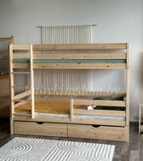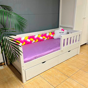 В комплекте: выдвижной ящик 2 шт., бортик. Спальное место: 80х160 см. Материал: массив сосны.