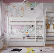 Двухъярусная кровать из массива березы «Вуди-1» с ящиками (белый)
