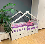 Кровать-домик «Киндер» с ящиками (80х180, 90х200 см) Массив сосны