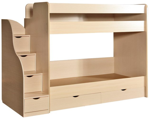 Оснащена вместительными шуфлядками, а так же ступенями-комодом.