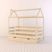 Кровать-домик «Киндер» с ящиками и доп. бортиком (80х180, 90х200 см) Массив сосны