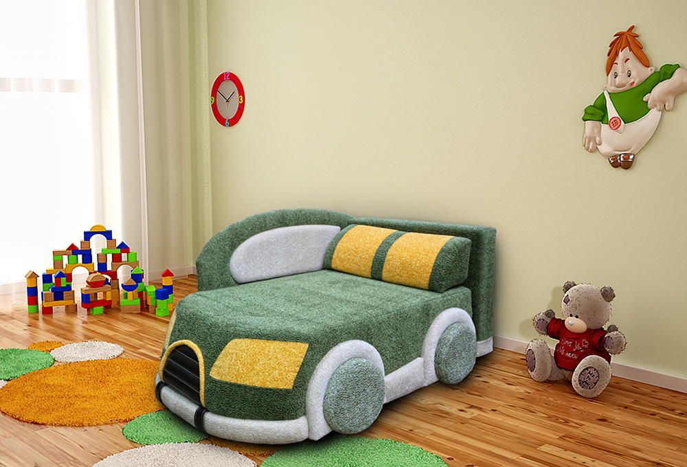 Декорирована подушкой в виде бабочки. Размер спального места: 190×80 см.