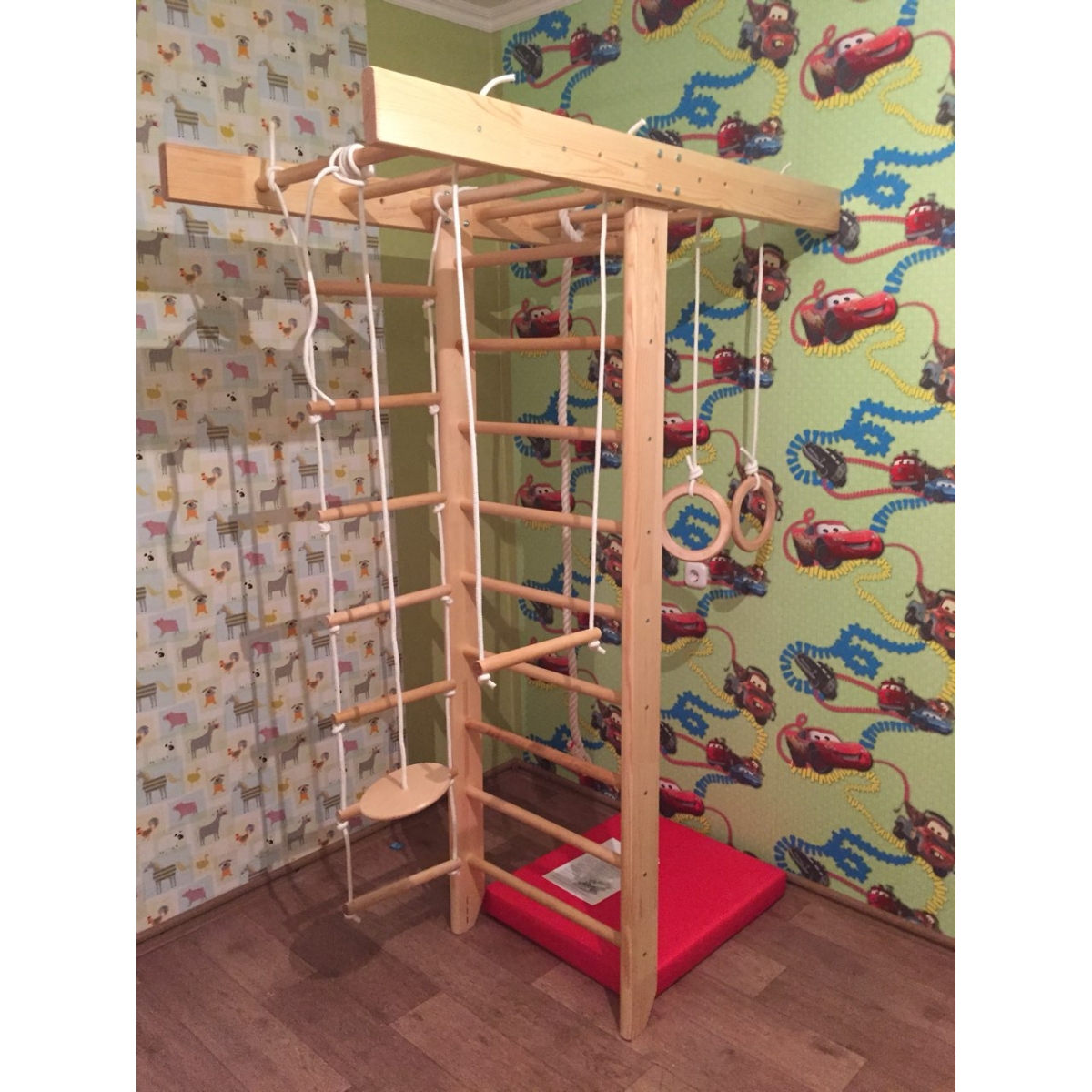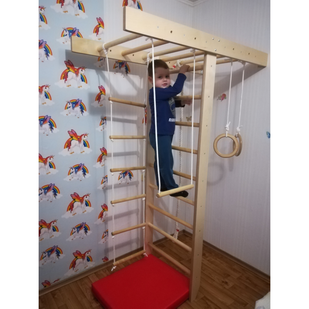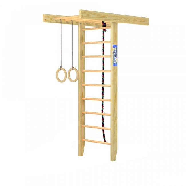 Комплектация: шведская стенка, рукоход, гимнастические кольца, веревочная лестница, канат, комплект креплений.