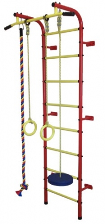 Детский спортивный комплекс «Пионер-С1нМ» крепится к стене в шести точках. Дополнительный упор шведской стенки идет в пол. Кроме стенки конструкция комплектуется канатом, гимнастическими кольцами и тарзанкой.Ступени шведской стенки выполнены из металлической трубы с нескользящим ПВХ покрытием.