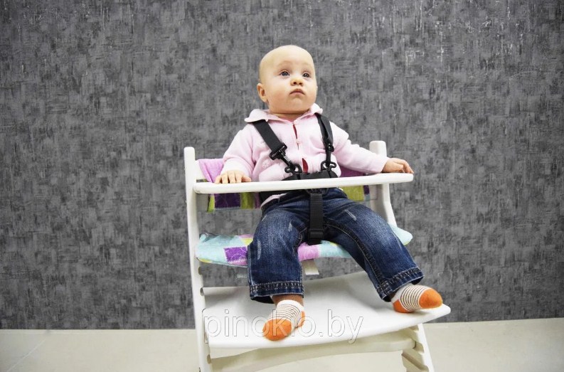 - Широкая основа конструкции делает ее максимально устойчивой. Даже при большом усилии ребенок не сможет перевернуть стул.