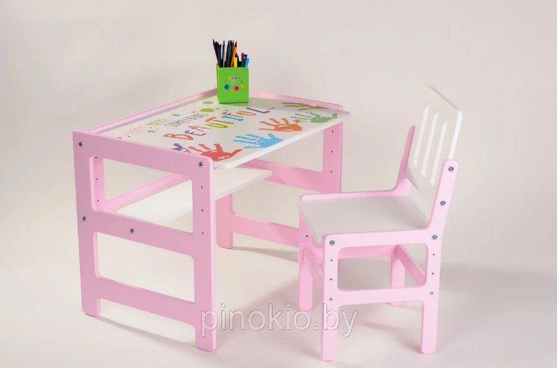 код 103374Комплект состоит из стола и стула, подходит для детей от 1,5 года и до 7 лет.