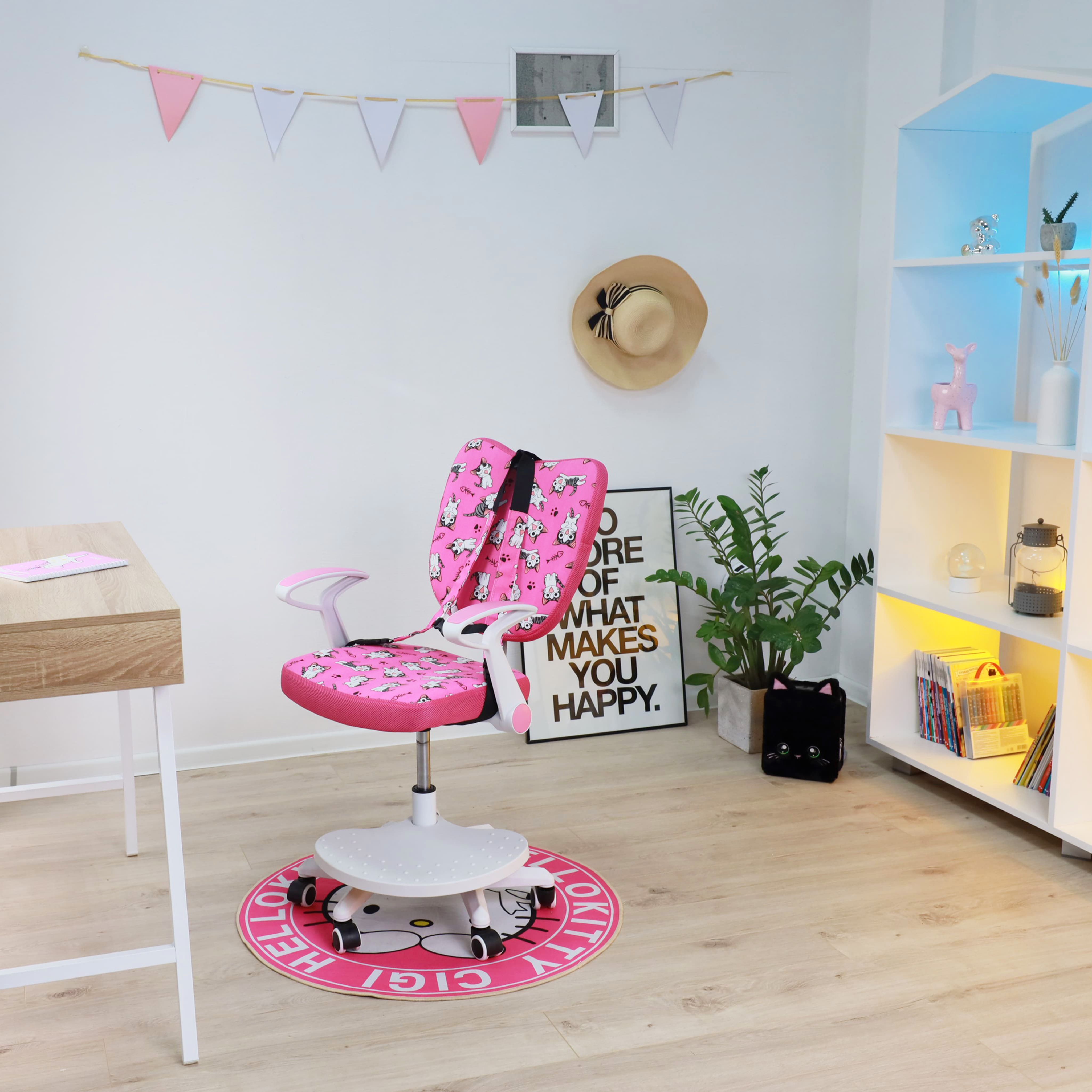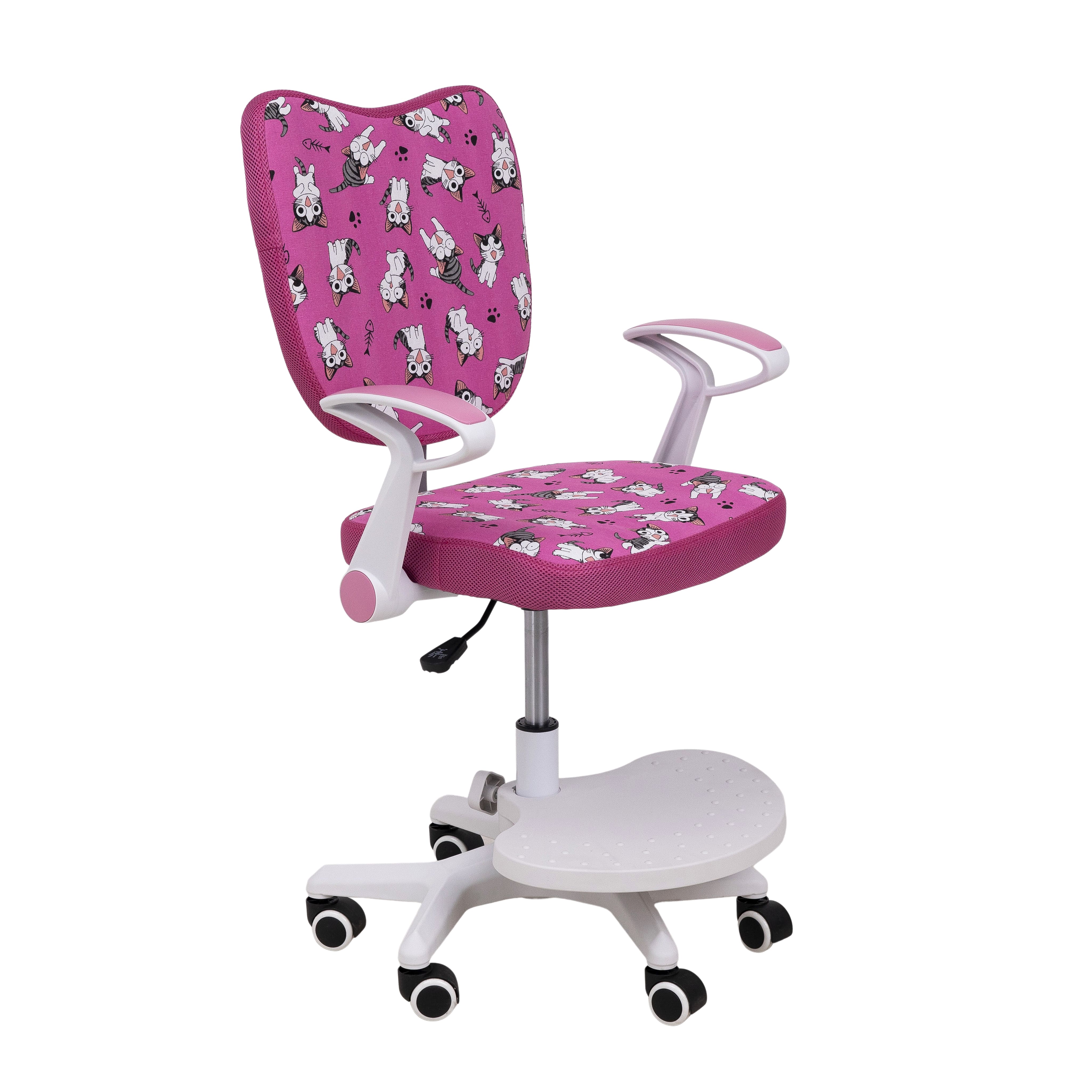 Кресло поворотное «CATTY» WHITE, ткань, (фуксия с котятами)