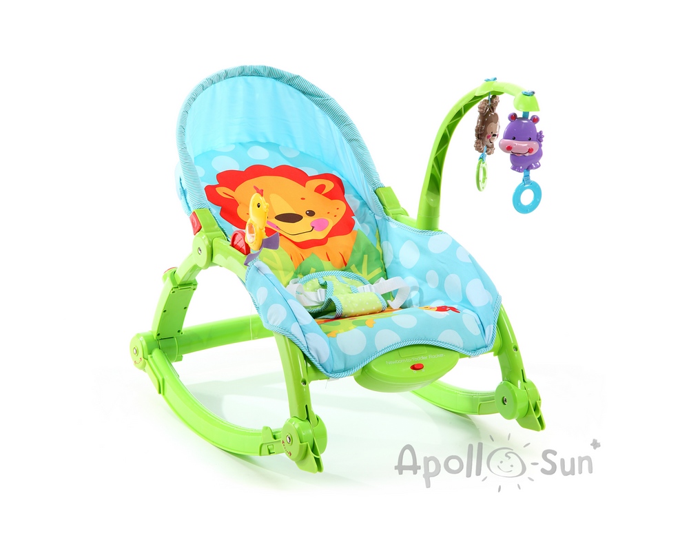 Музыкальный шезлонг с виброблоком Apollo Sun отличается надежностью и интересным дизайном. Шезлонг оснащен современным виброблоком, который поможет малышу уснуть, имитируя поездку на автомобиле. Для создания в комнате веселой атмосферы, шезлонг оснащен съемным модулем с игрушками-погремушками с музыкальным сопровождением.