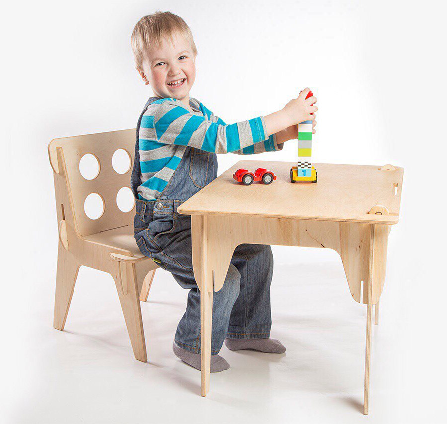 Современный набор детской мебели PlayWood Minima состоит из функционального стола-парты и двух небольших стульчиков. Набор изготовлен из прочного и экологичного дерева, что особенно важно для ребенка. Парта имеет несколько вариантов настроек для письма и для рисования, которые можно менять в зависимости от того, чем занимается ребенок.