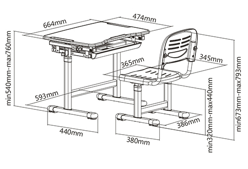 Размеры парты – 66.4 х 47.4 х 54-76 см