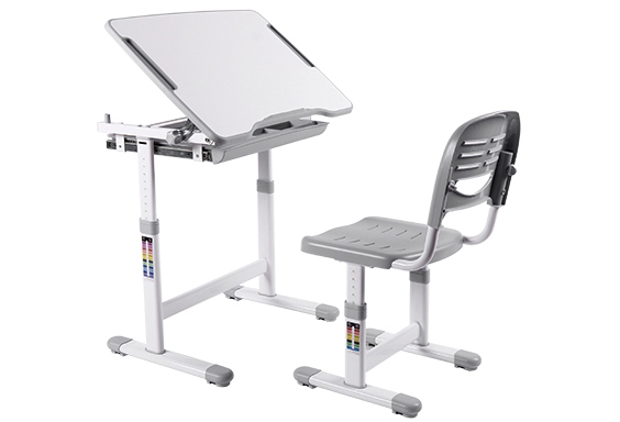 Имеется регулировка наклона столешницы (до 40 градусов) и высоты парты и стульчика
