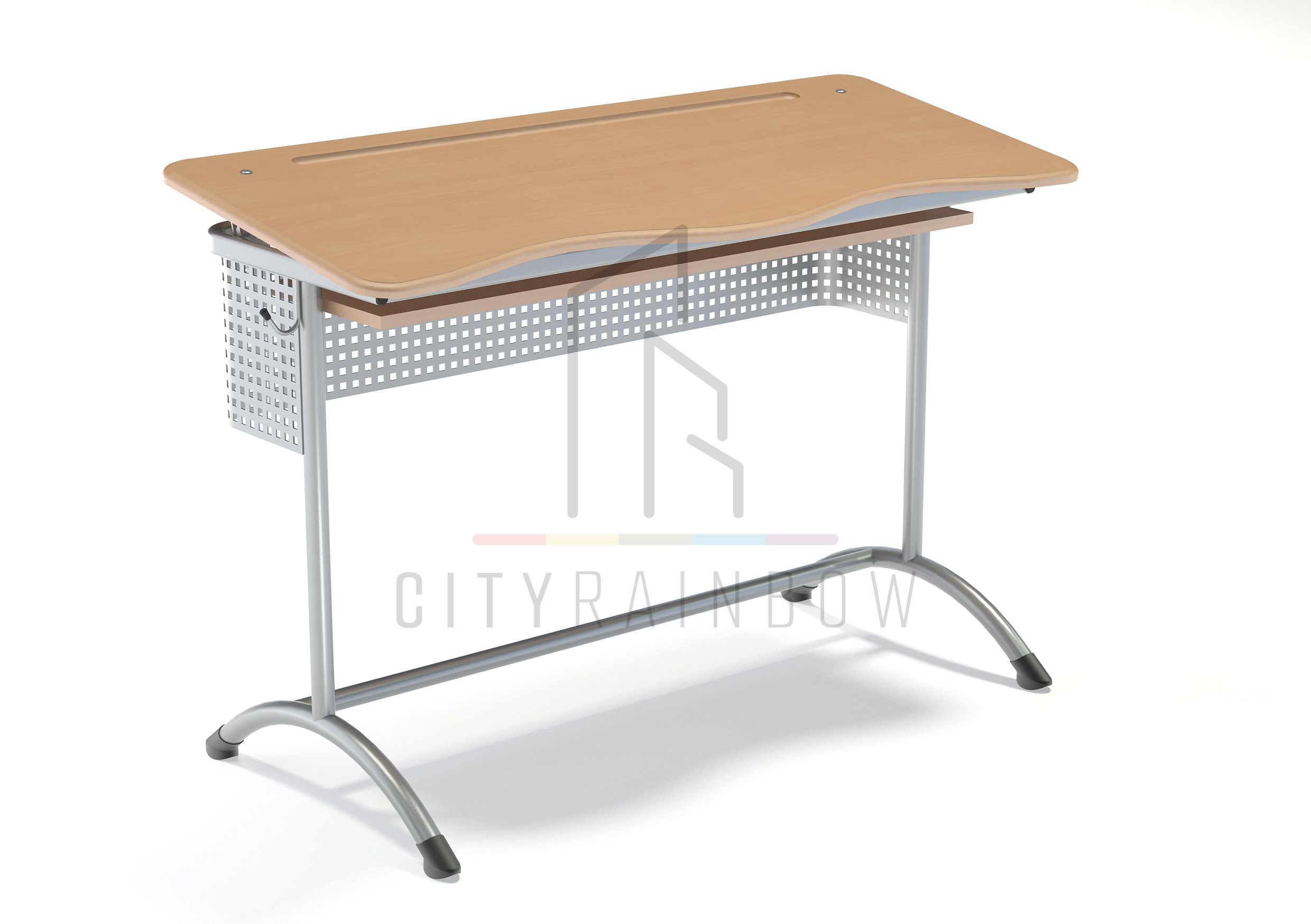 Парта двухместная «ЭКСТРА (Н)» с полкой, с угл. накл. стол. и перф. экраном