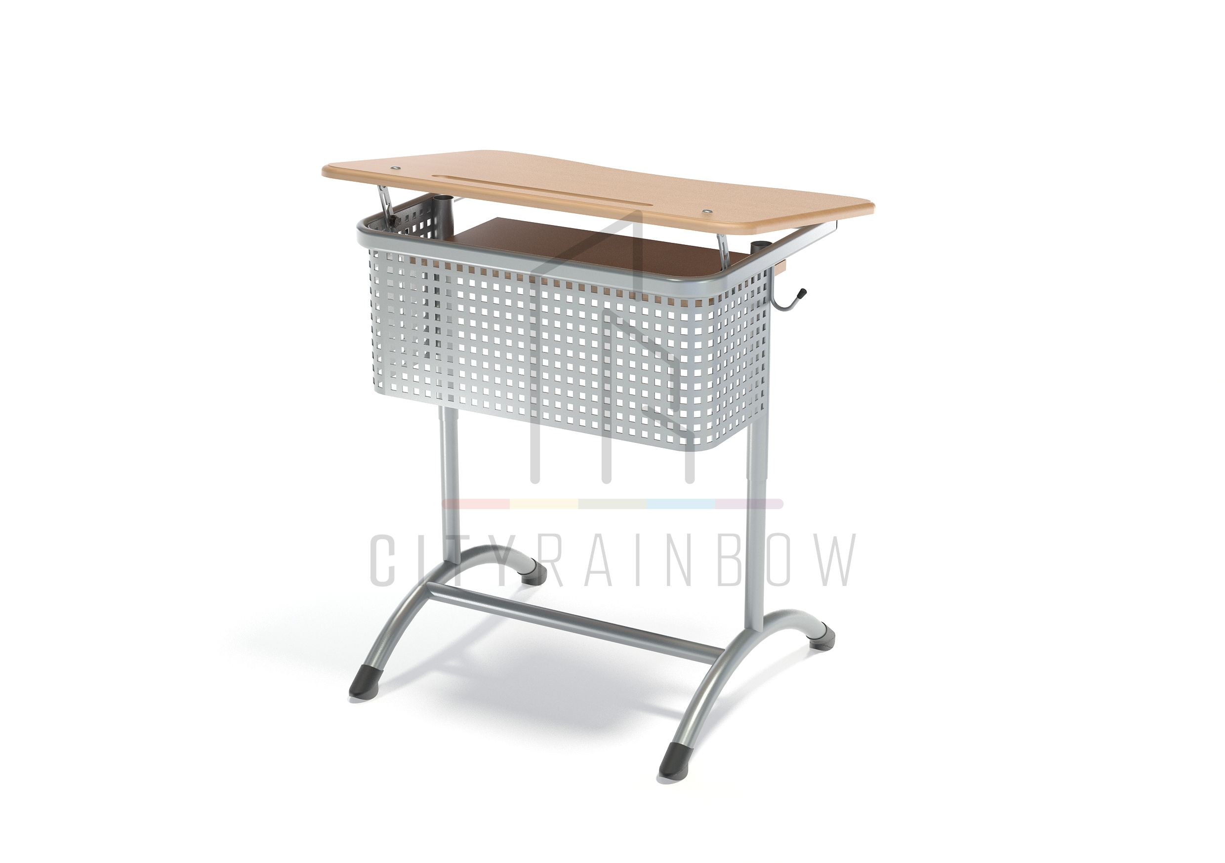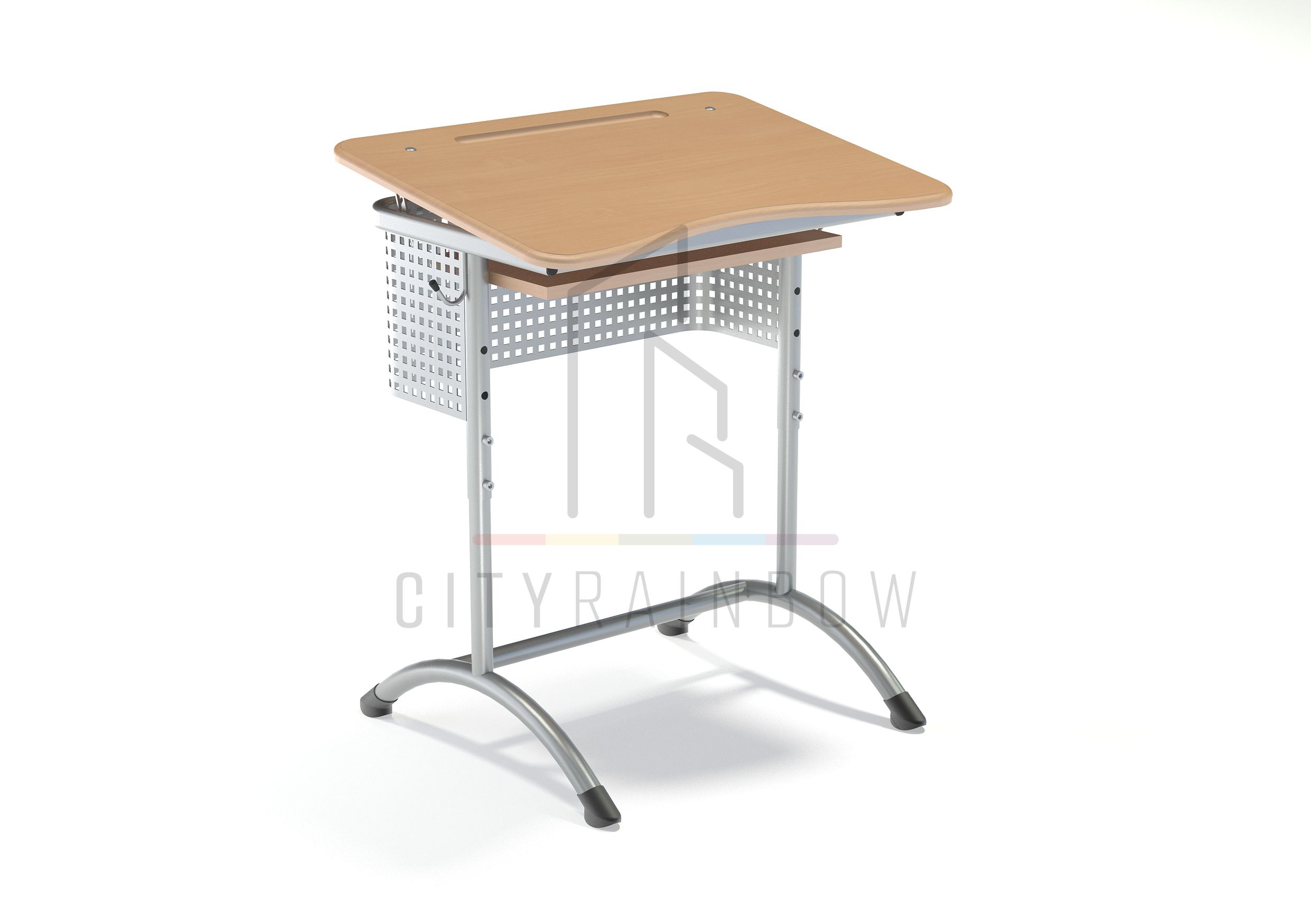 Парта одноместная «ЭКСТРА (Р)» с полкой, с угл. накл. стол. и перф. экраном