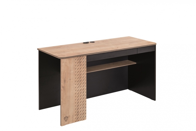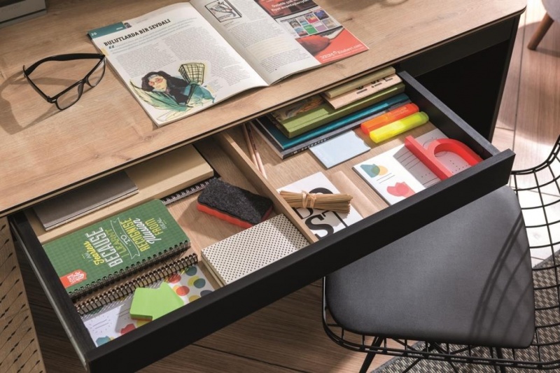 Широкая долговечная столешница, три тумбы с выдвижными ящиками.