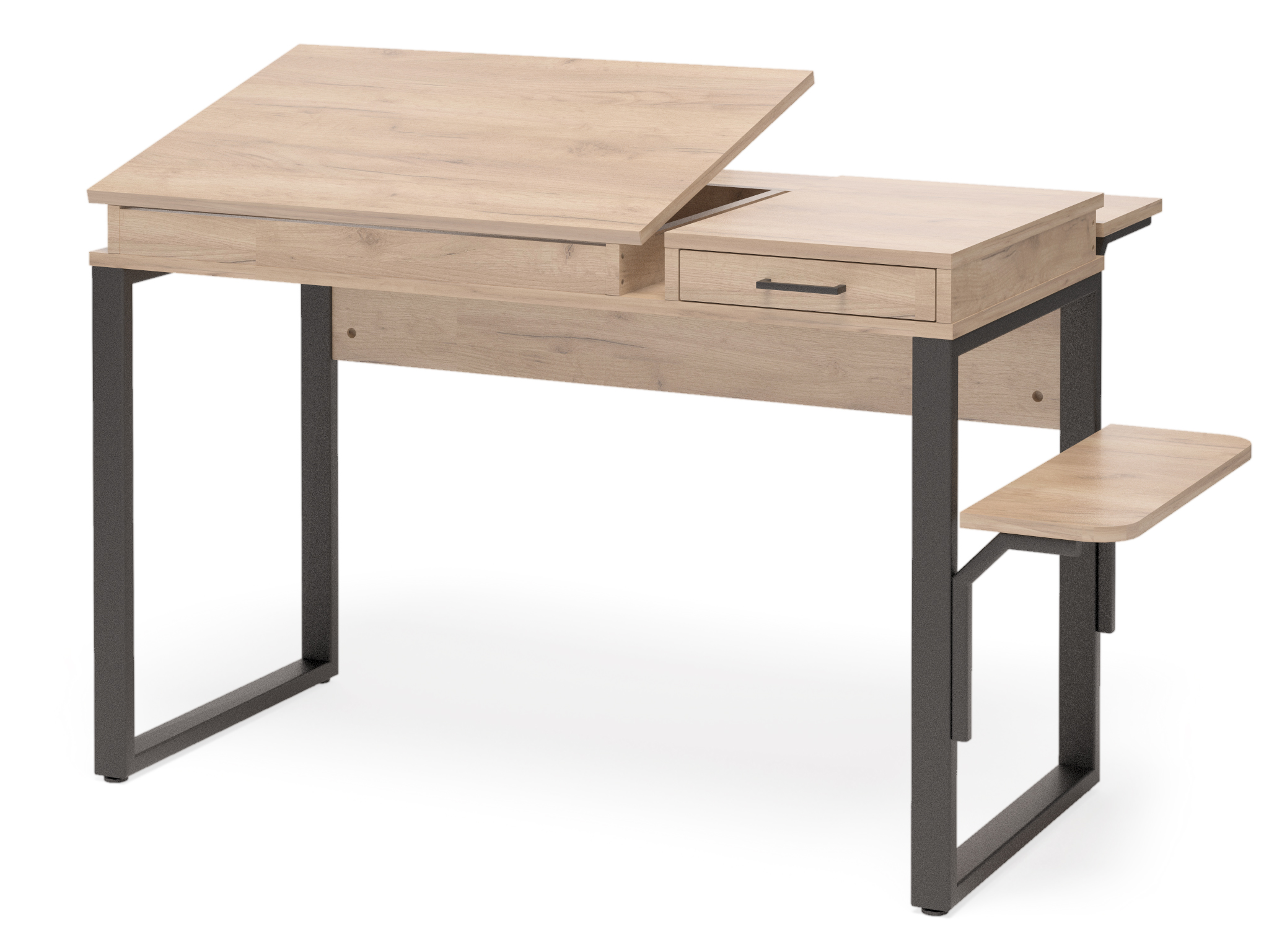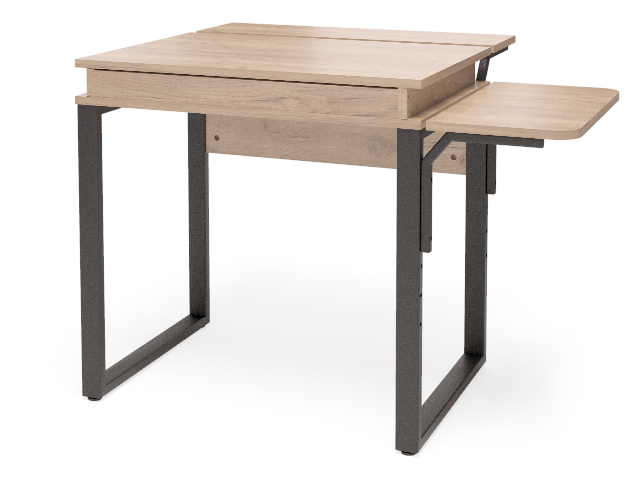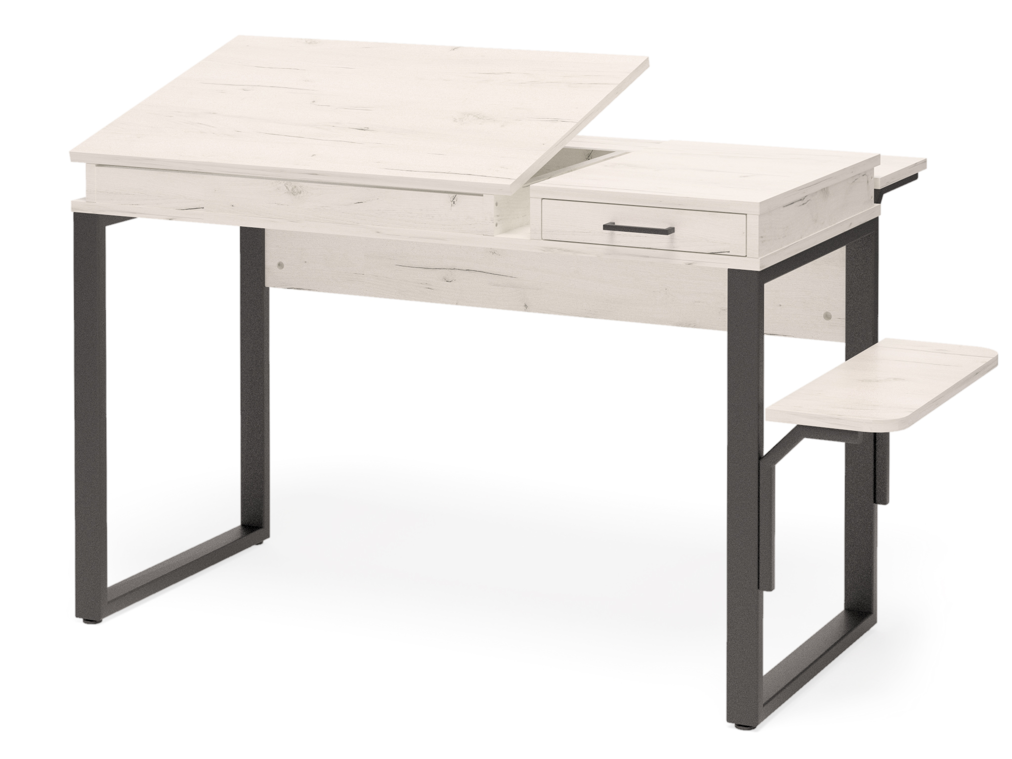 Столешница изготовлена из ЛДСП, опоры - труба профильная. Комплектация - стол, тумба, лоток для системного блока.