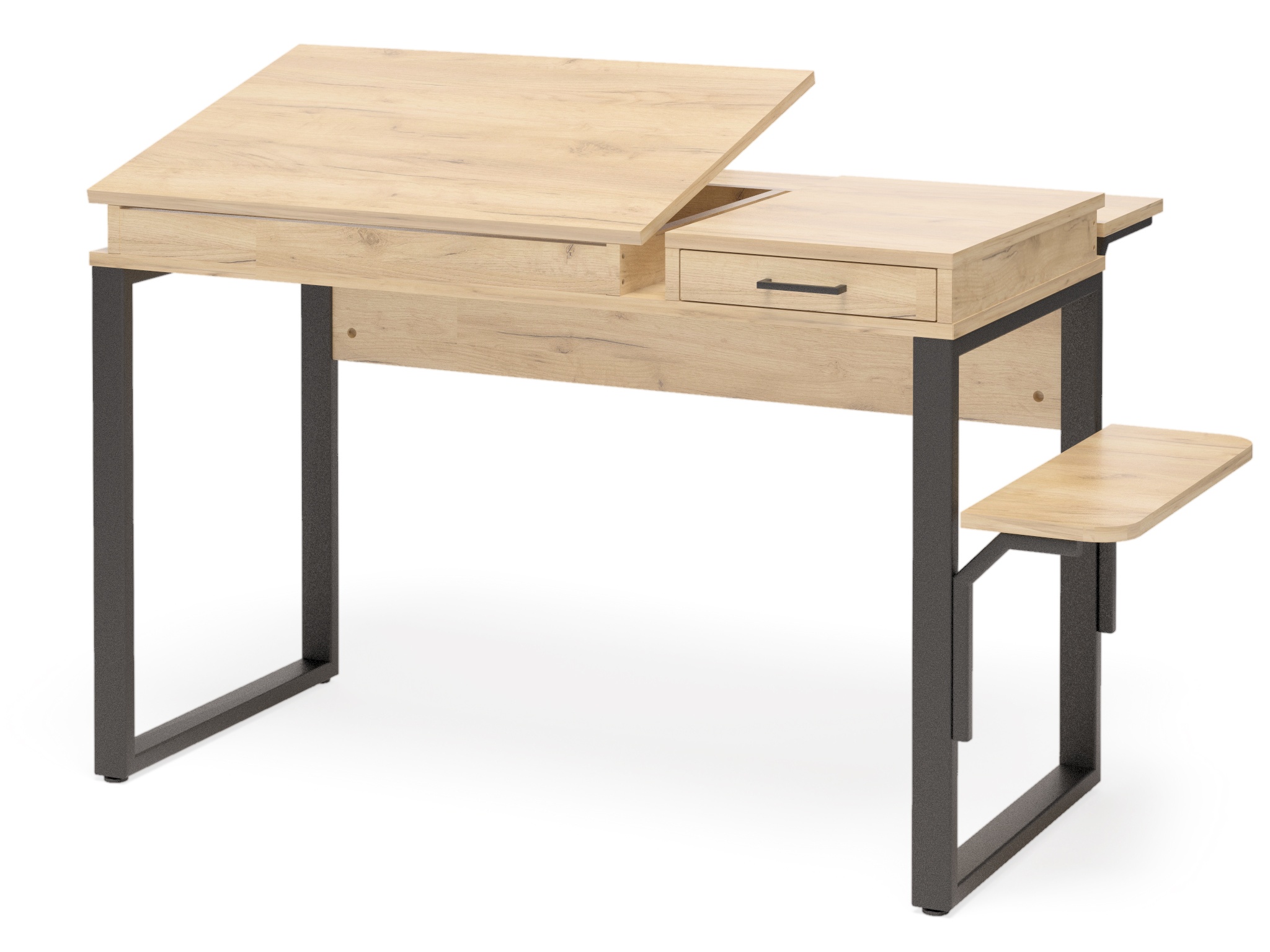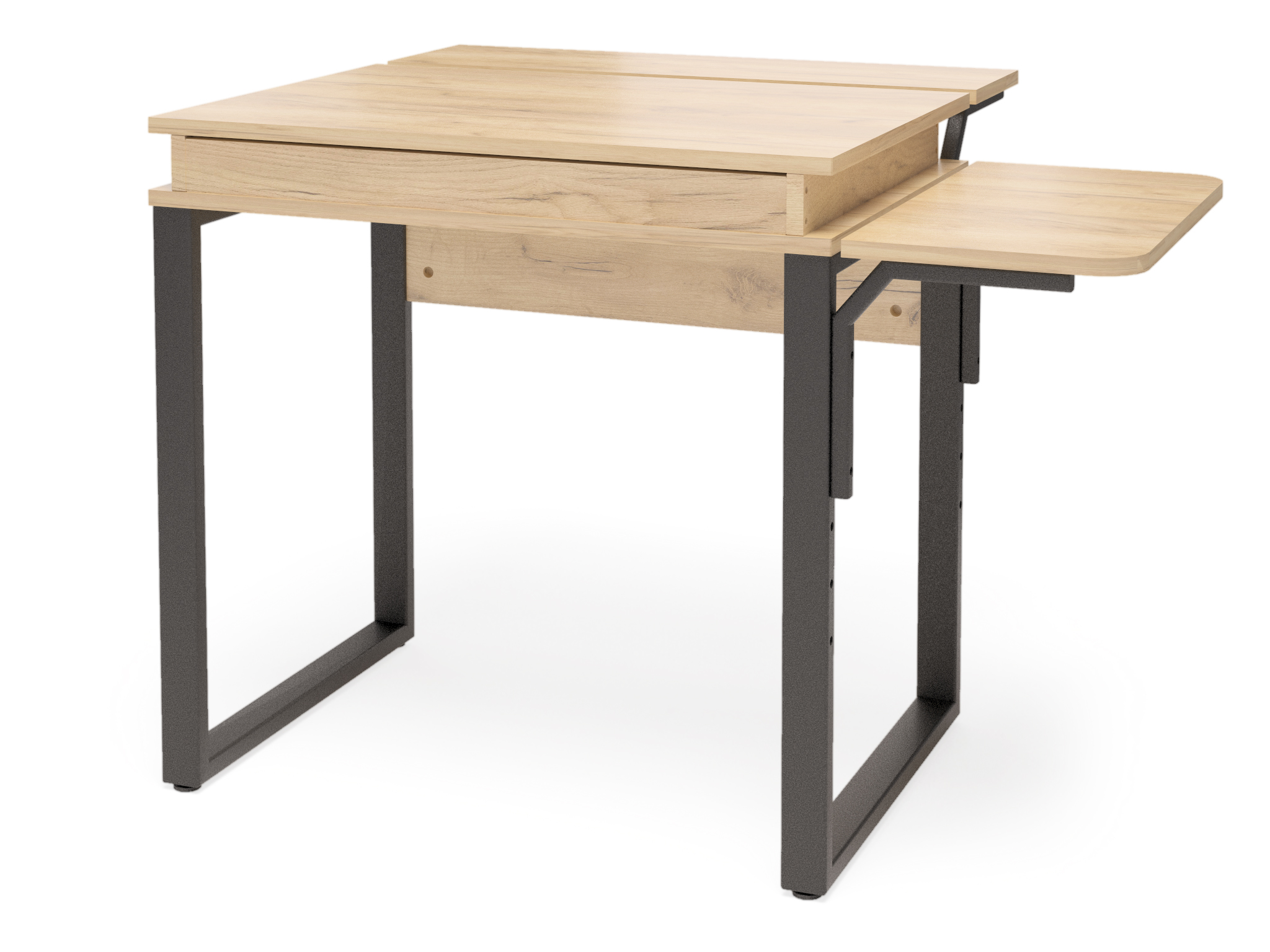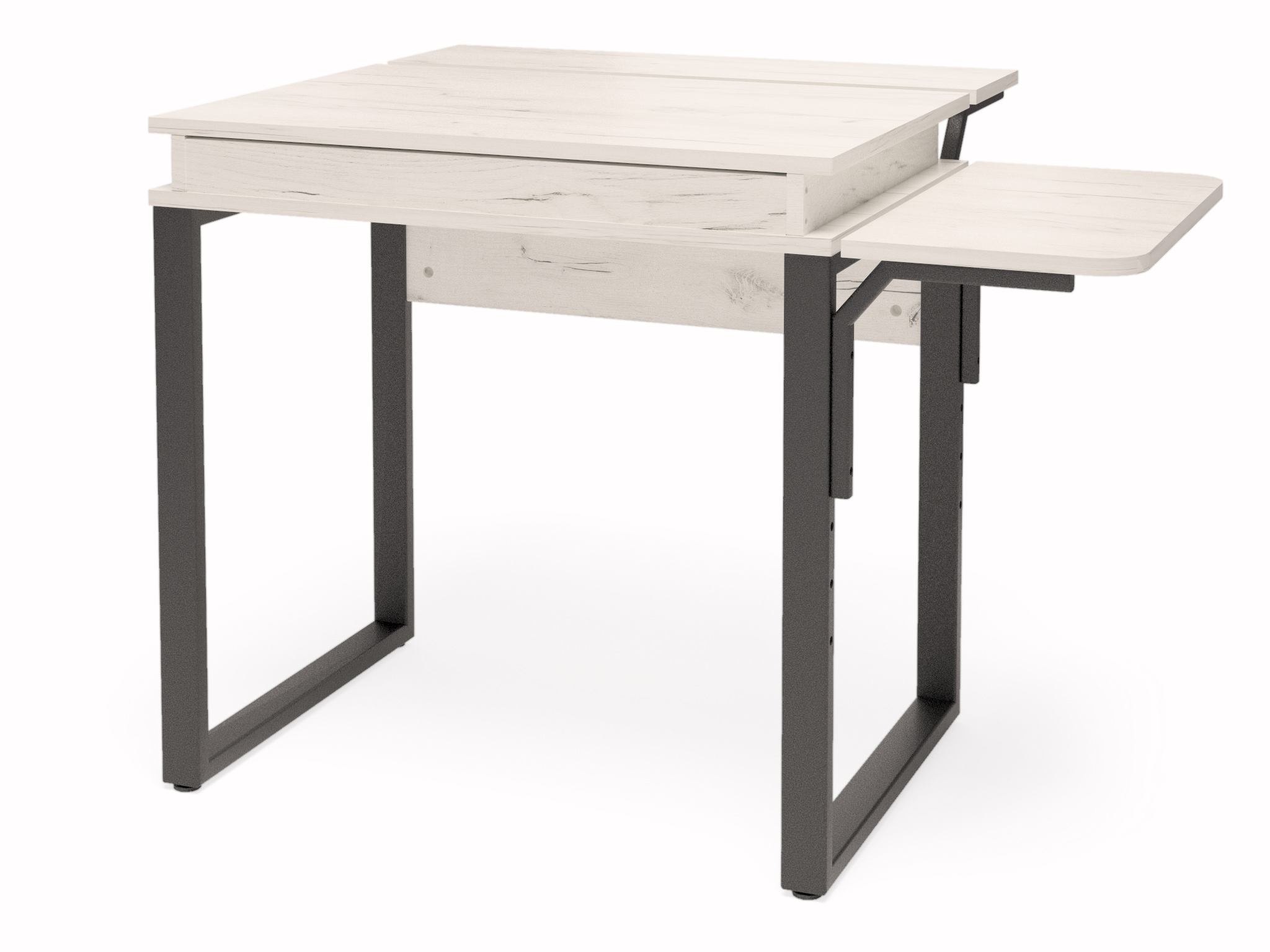 Столешница изготовлена из ЛДСП, опоры - труба профильная. Комплектация - стол, тумба, лоток для системного блока.