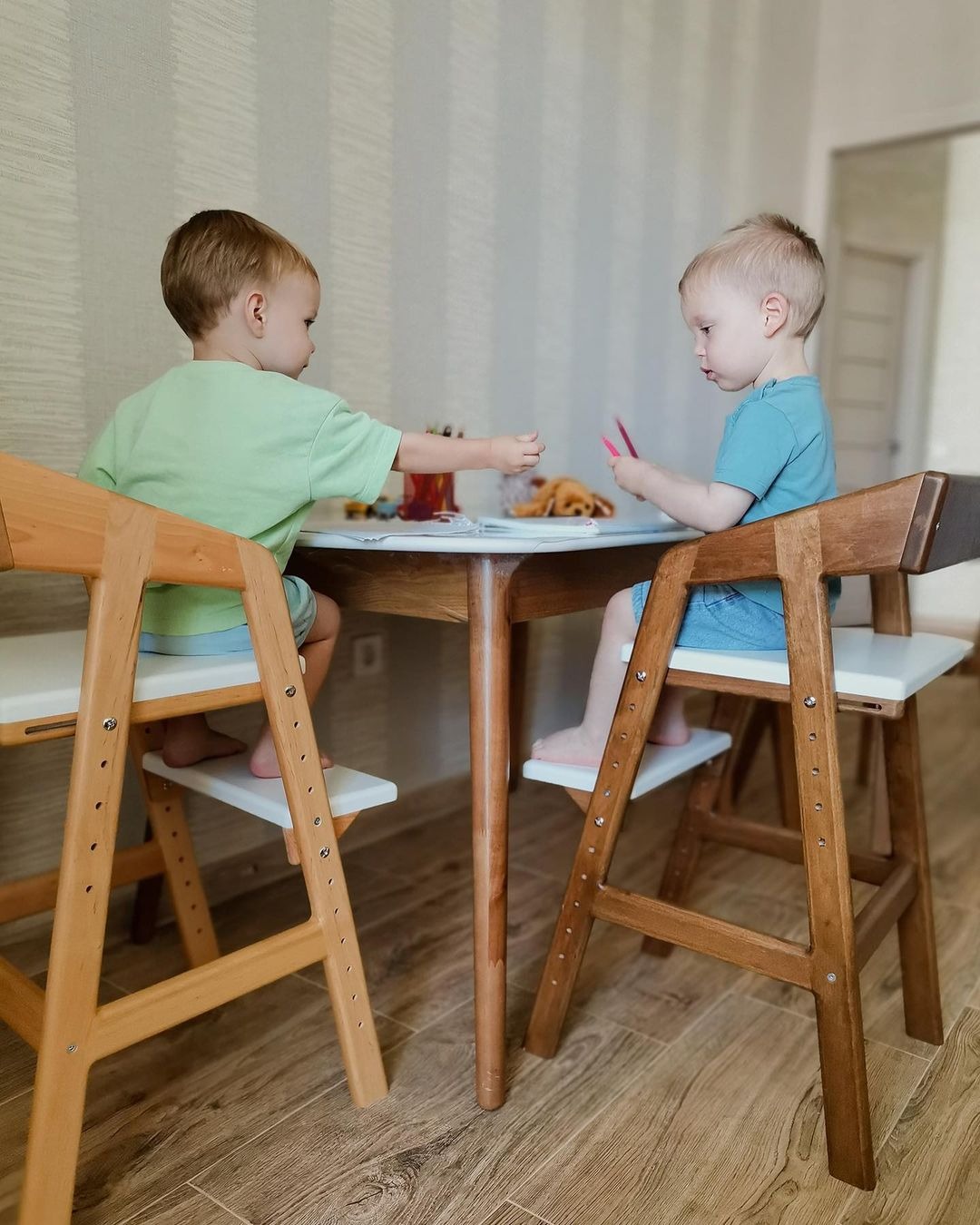 Растущий стул «Натуральный» и «Тёмный орех» с белой сидушкой