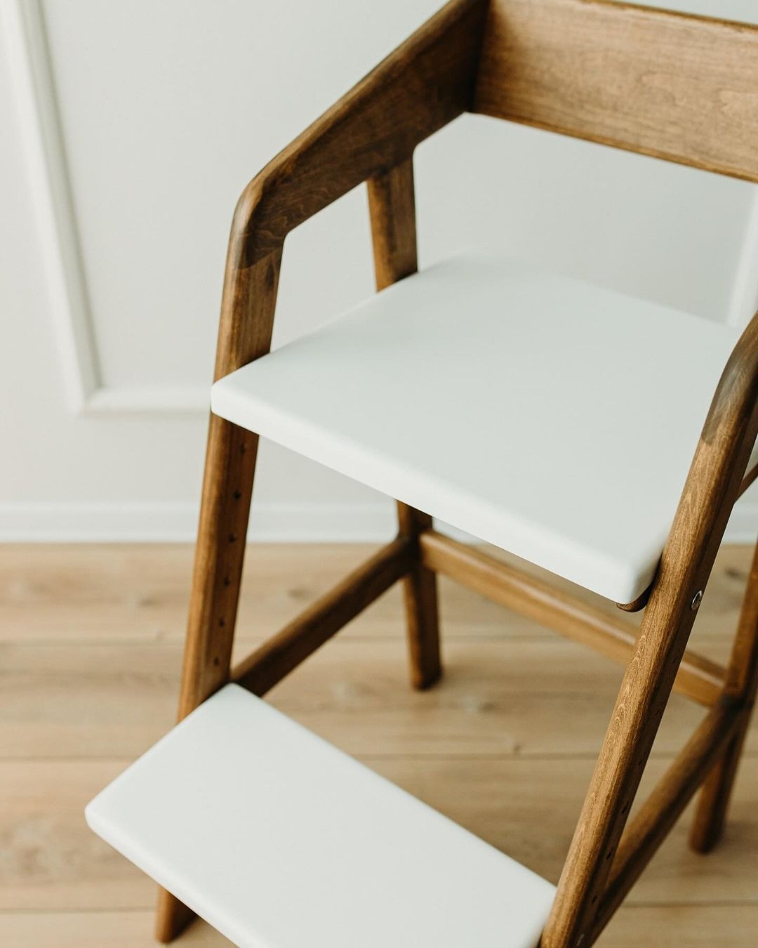 Растущий стул «Тёмный орех» с белой сидушкой и подножкой