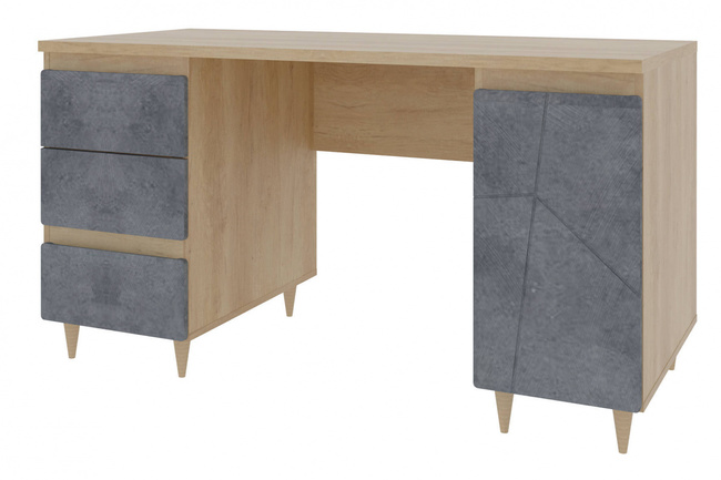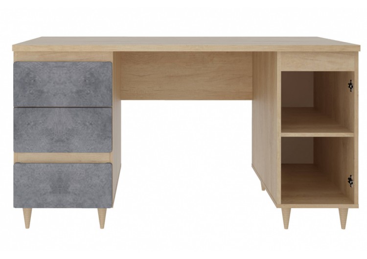 Широкая долговечная столешница, три тумбы с выдвижными ящиками.
