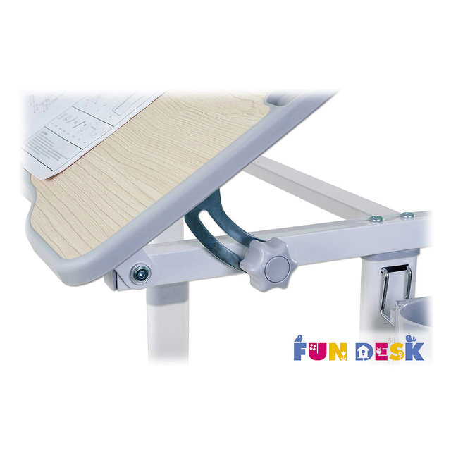 Стол оснащен двумя тумба с выдвижными ящиками и надстройкой в виде стеллажа.