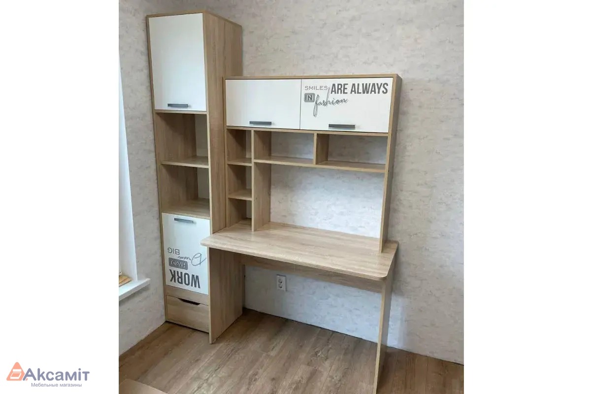 - Письменный стол с полками обеспечит комфорт и удобство ученикам при выполнении домашней работы или творческих заданий.
