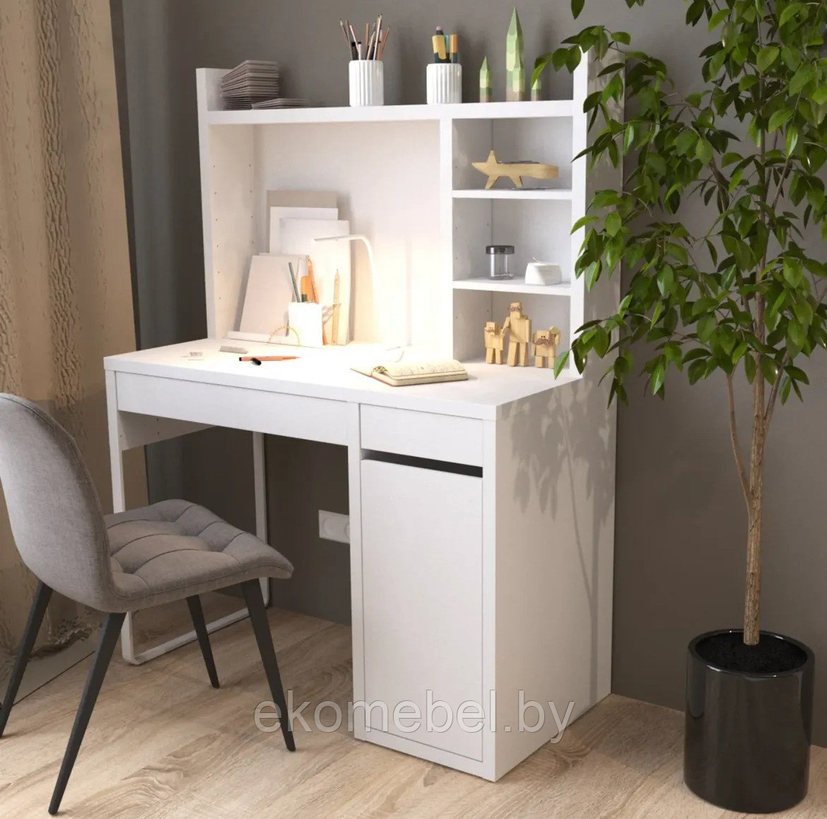 Письменный стол "Компи 105" в белом цвете идеально впишется в интерьер детской комнаты. На просторной столешницы можно разместить не только школьные принадлежности, но и компьютер или ноутбук.