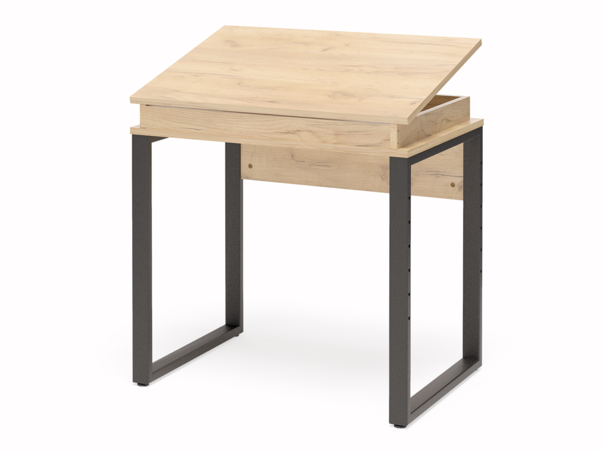 Стол оснащен выдвижными ящиками и дополняется навесными полками.