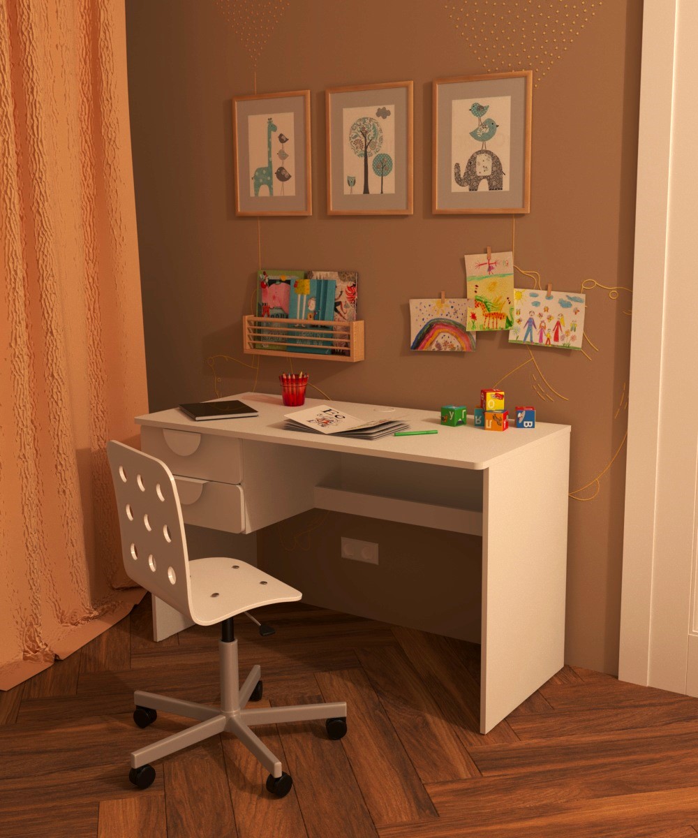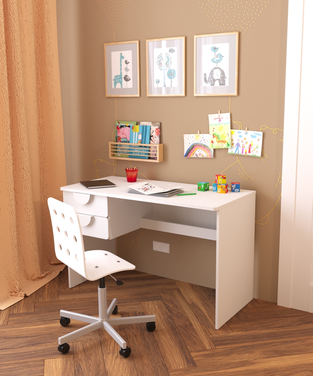Стол из коллекции Пикси — идеальный спутник для детской комнаты! Cоздан с заботой о комфорте и безопасности, он сочетает в себе стиль, функциональность и современные технологии: Покраска по технологии «Пигмент» — стойкое и яркое покрытие, нанесённое на УФ-линиях, безопасное для детей и устойчивое к царапинам. Два вместительных ящика с доводчиками и направляющими скрытого монтажа — никаких лишних деталей, только плавность и тишина. Отверстие для проводов сверху и кабель-канал снизу — чтобы провода не мешались под ногами и всё было аккуратно. Минимализм, продуманный до мелочей — чтобы ребёнку было удобно учиться, играть и твор