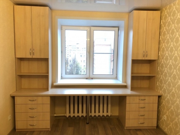 2 тумбы с ящиками, надстройка с нишами и шкафчиками.