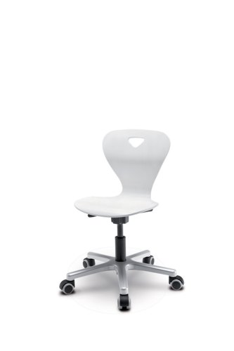 Плавно перетекающие друг в друга сиденье и спинка этого стула изготовлены из натурального бука. Элементы крепятся к стальному основанию особым образом, благодаря которому сиденье чутко реагирует на движения сидящего на нем ребенка. Диапазон колебаний влево-вправо - 3 градуса, вперед-назад - 8 градусов.