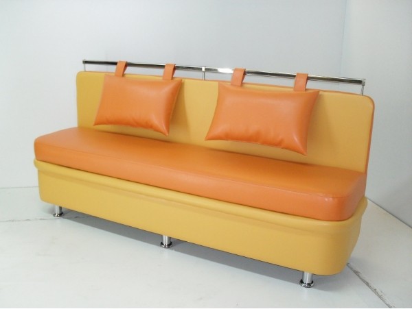 Диван для кухни «Ливерпуль» может быть выполнен в различных цветовых вариациях, что помогает подобрать подходящий вариант именно для вашего интерьера. Спинка представляет собой ряд откидных подушек с креплением к перекладине. Конструкция оснащается раскладным спальным местом.