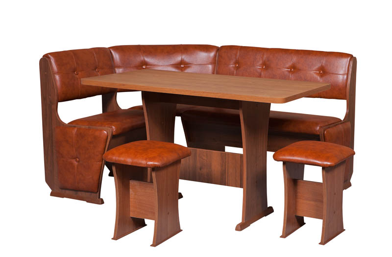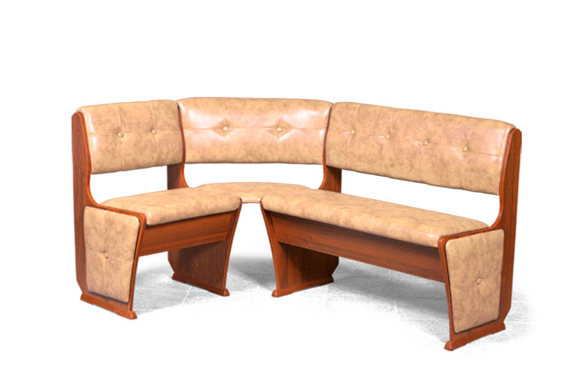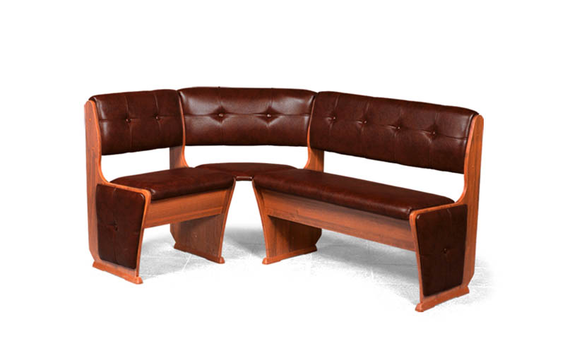 Диван для кухни «Милан» имеет угловую конструкцию, удобную при размещении в небольшом помещении. Спинка, сиденье и торцевые стенки дивана имеют мягкие элементы. Обивка украшена декоративной стяжкой.